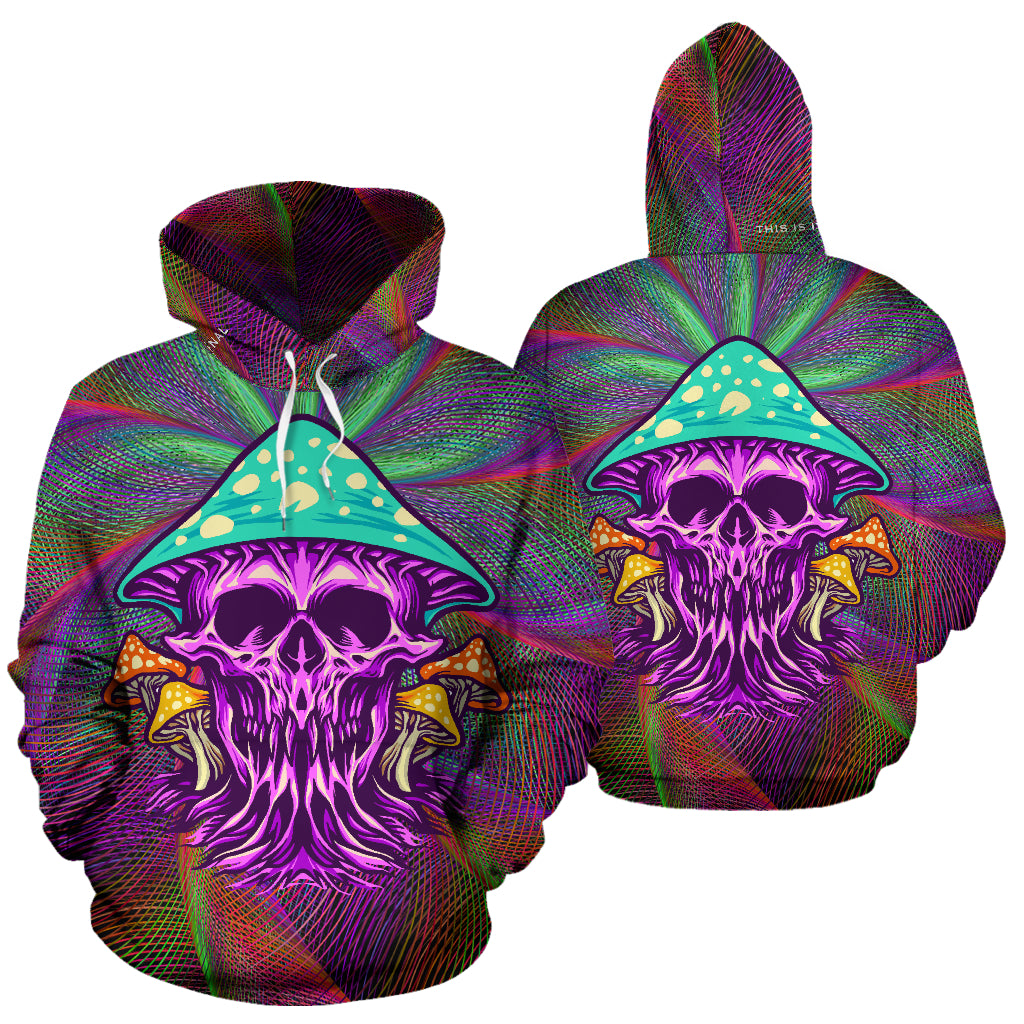 Colorful Psychedelic Design Skull with Mushrooms Four Hoodie