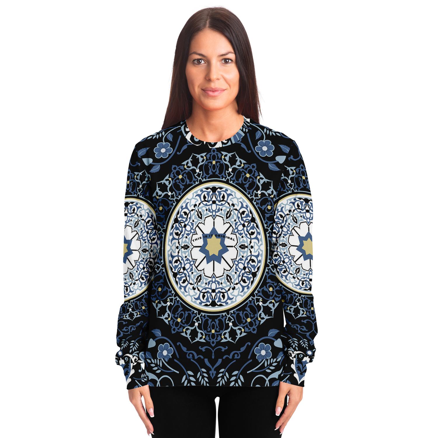 Dark Blue Ornamental Mandala Luxury Design Fashion Sweatshirt