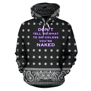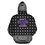 Don't tell me what to do. Bandana Black & White Paisley Style Hoodie