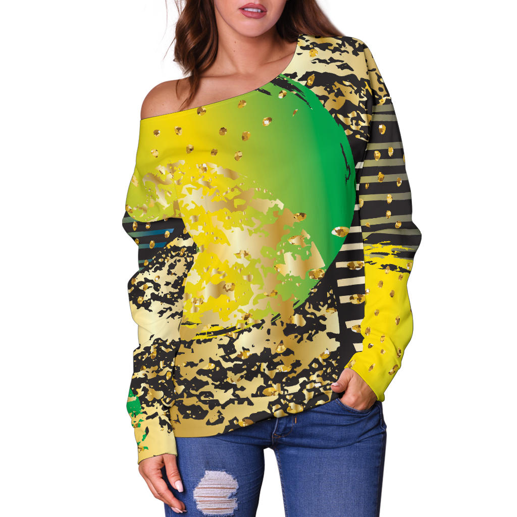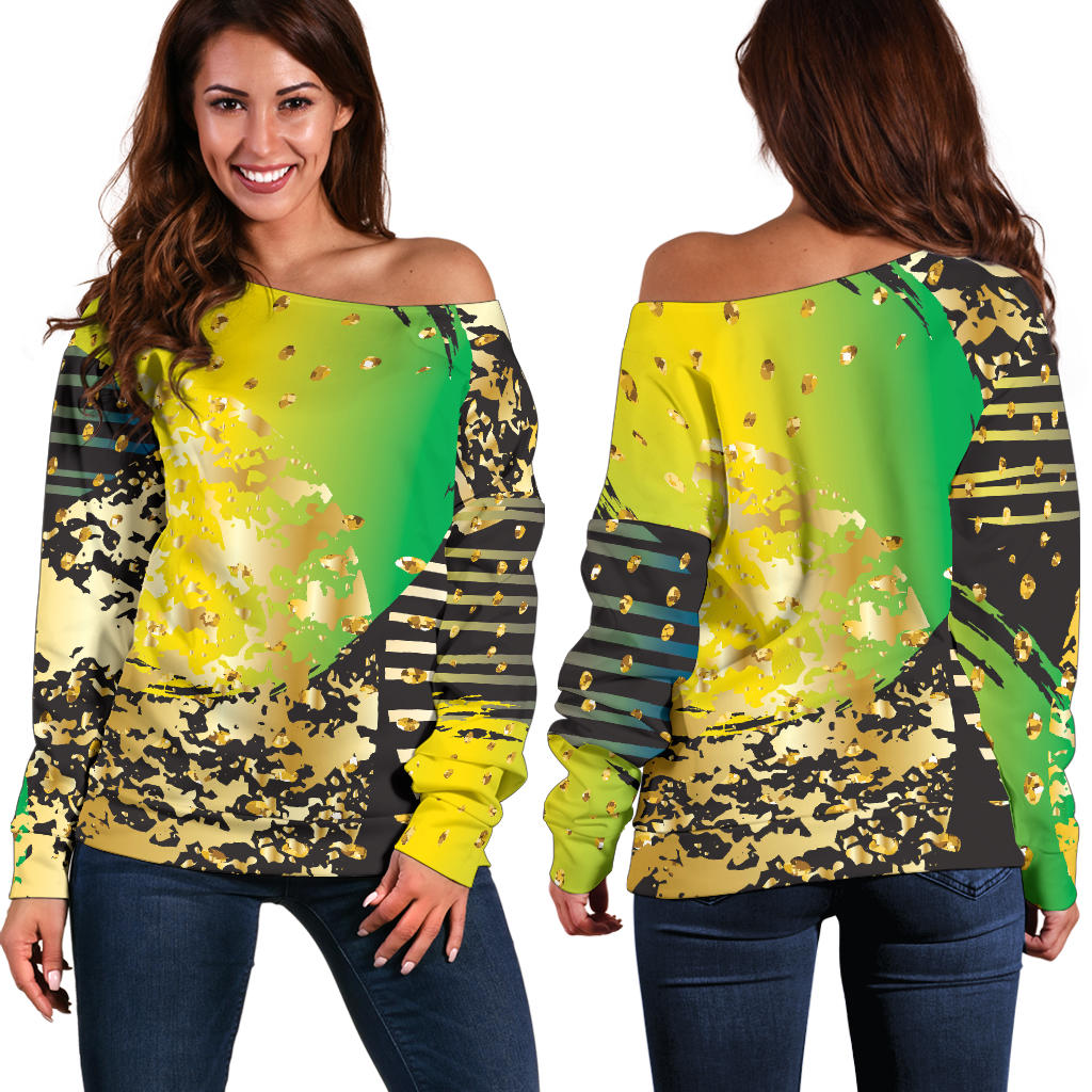 Energizing Neon Dots Women's Off Shoulder Sweater