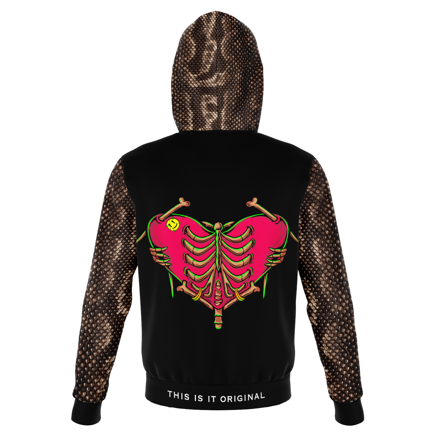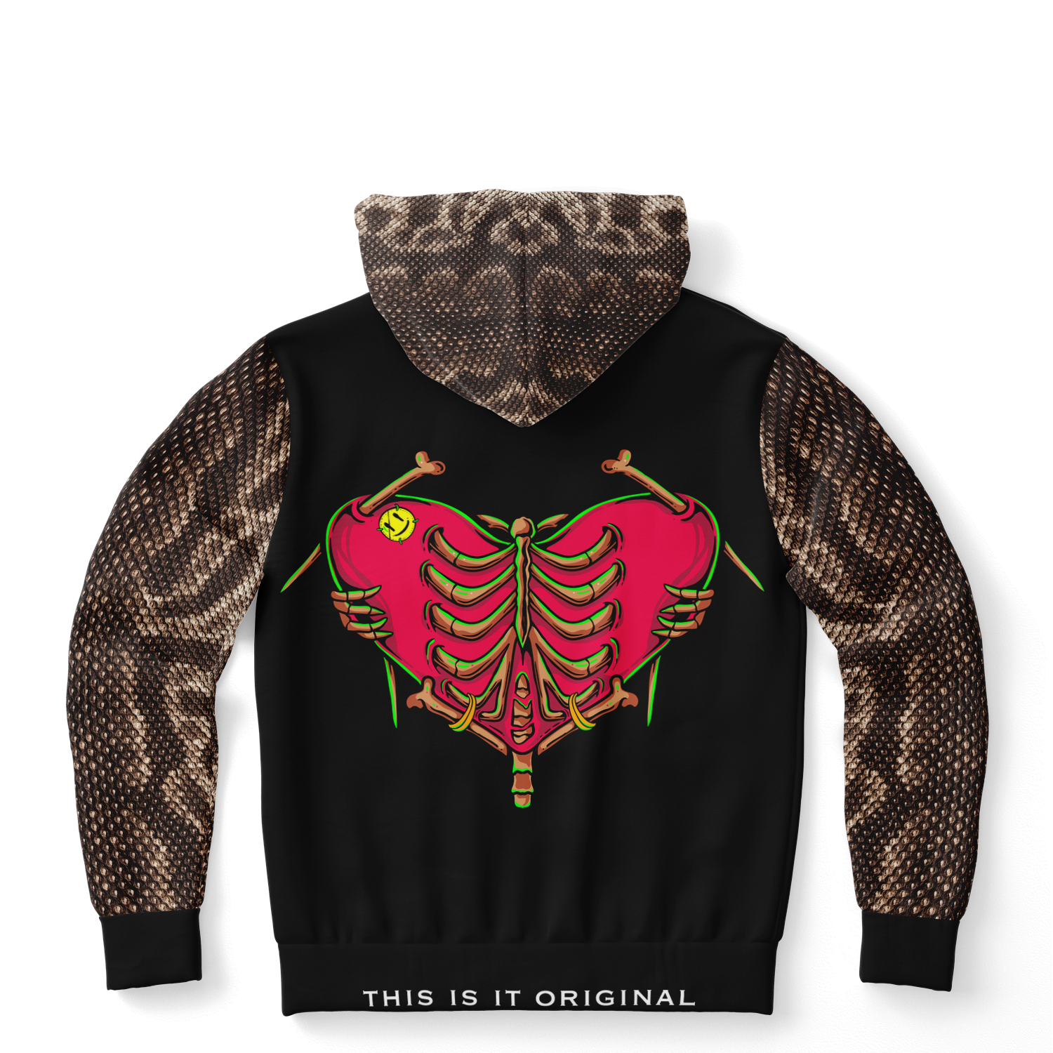 Exclusive Fake Snake Skin Leather with Heart and simple Smile Luxury Unisex Fashion Hoodie