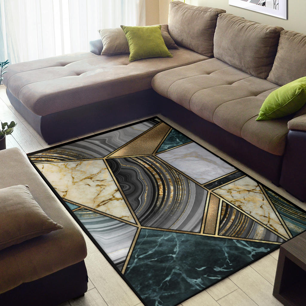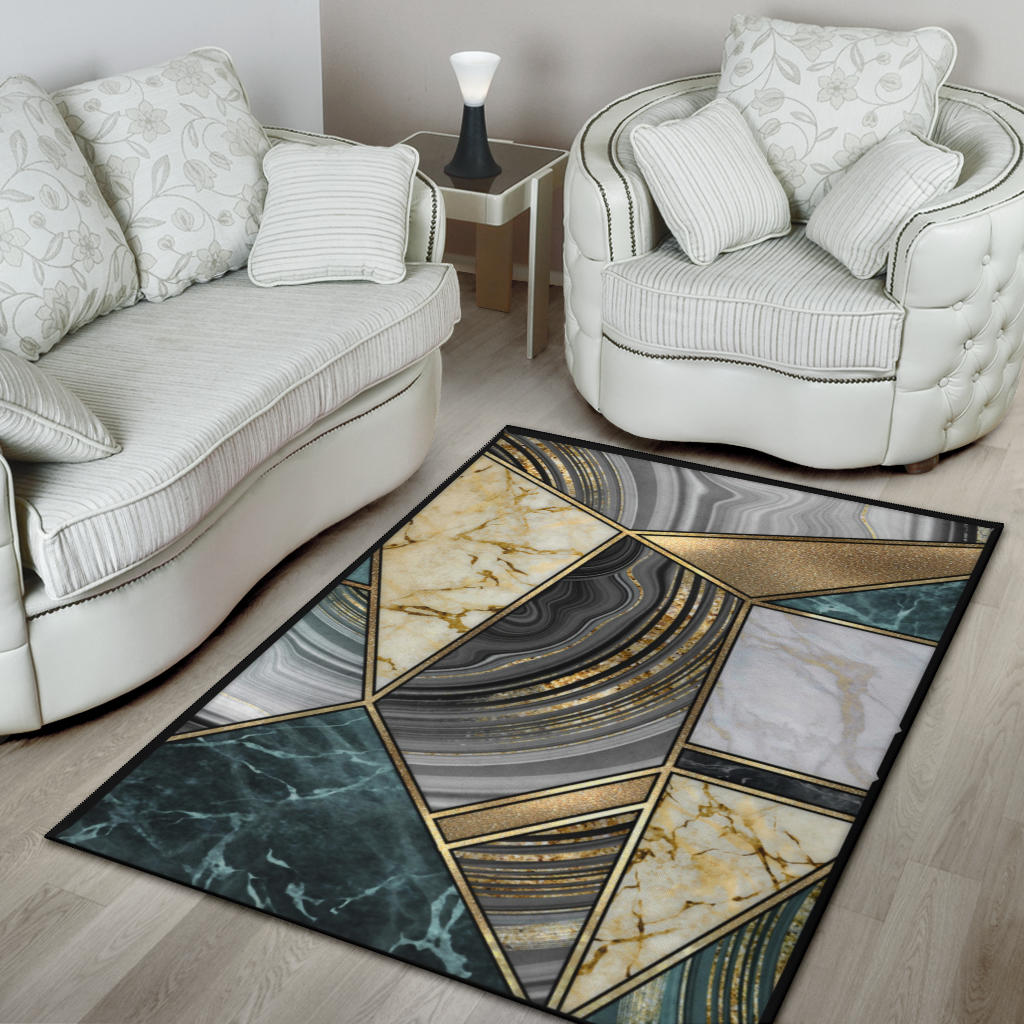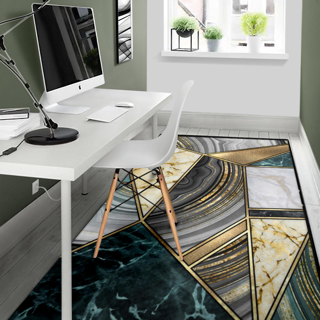 Faux Marble Geometric Gold Area Rug
