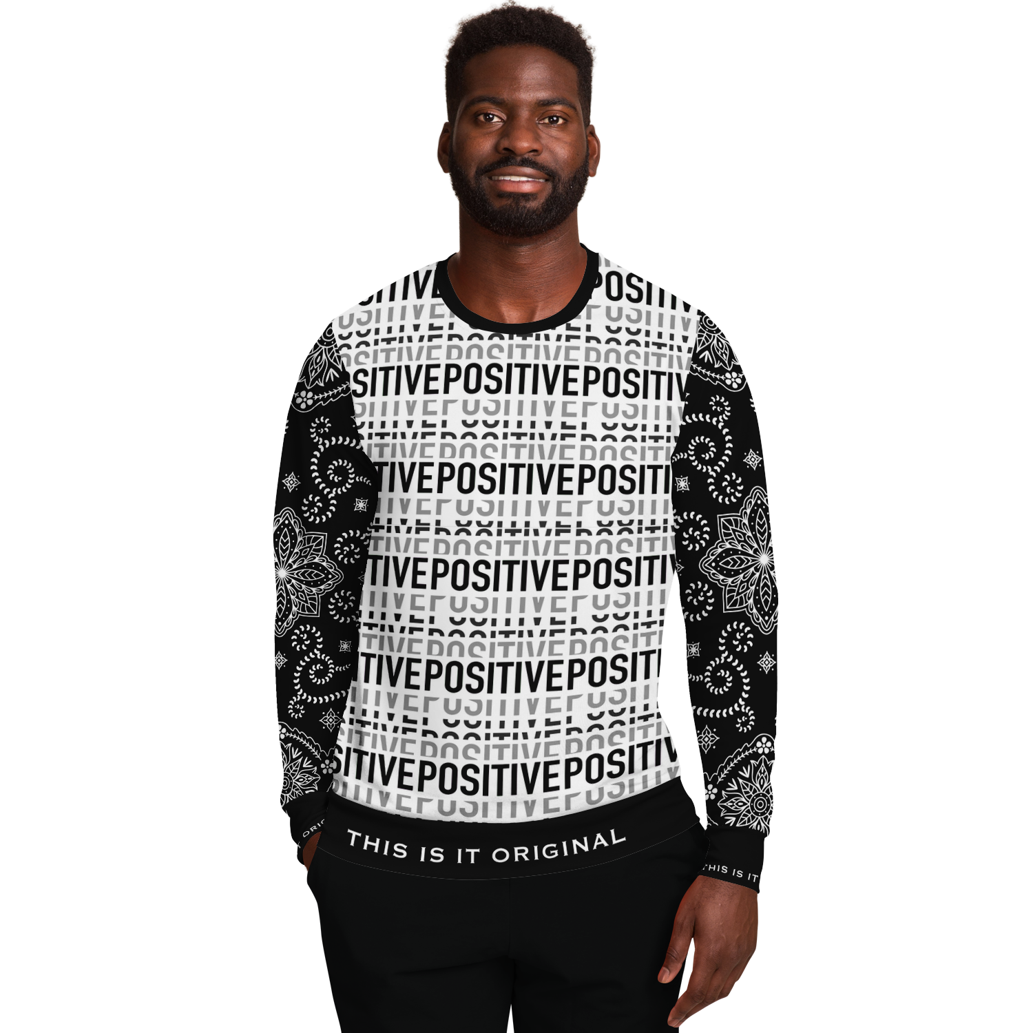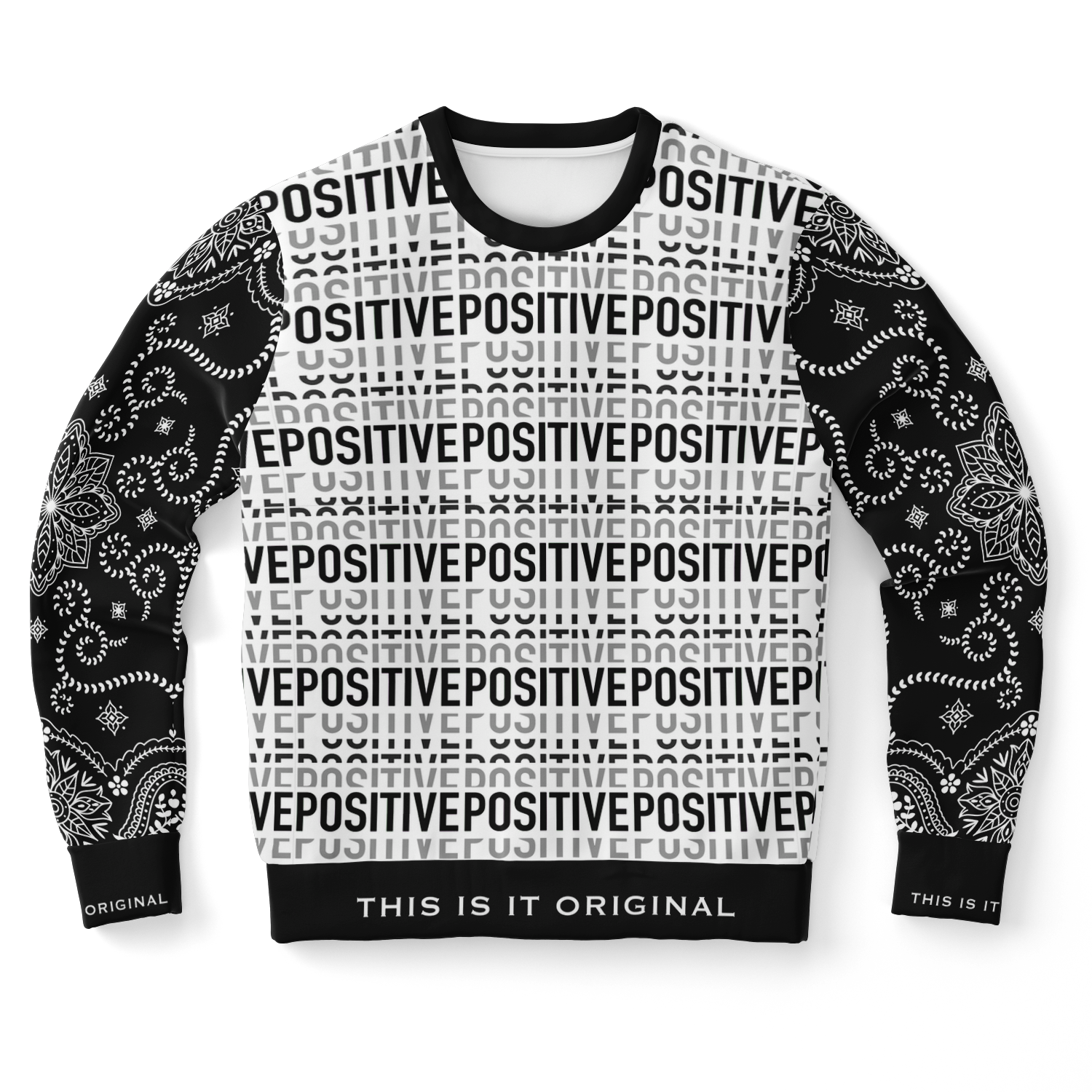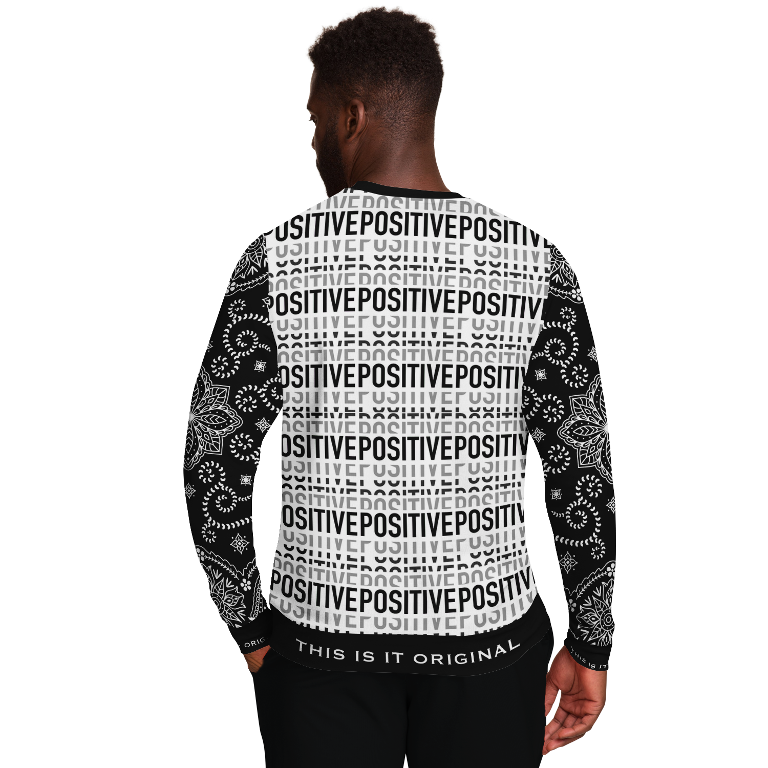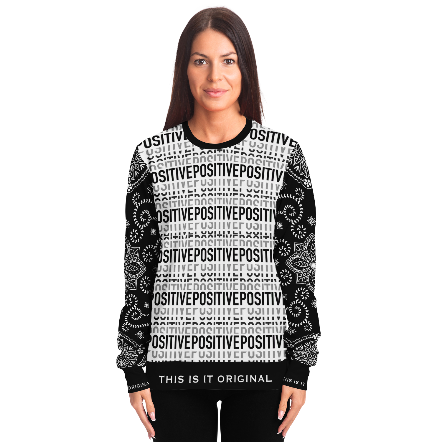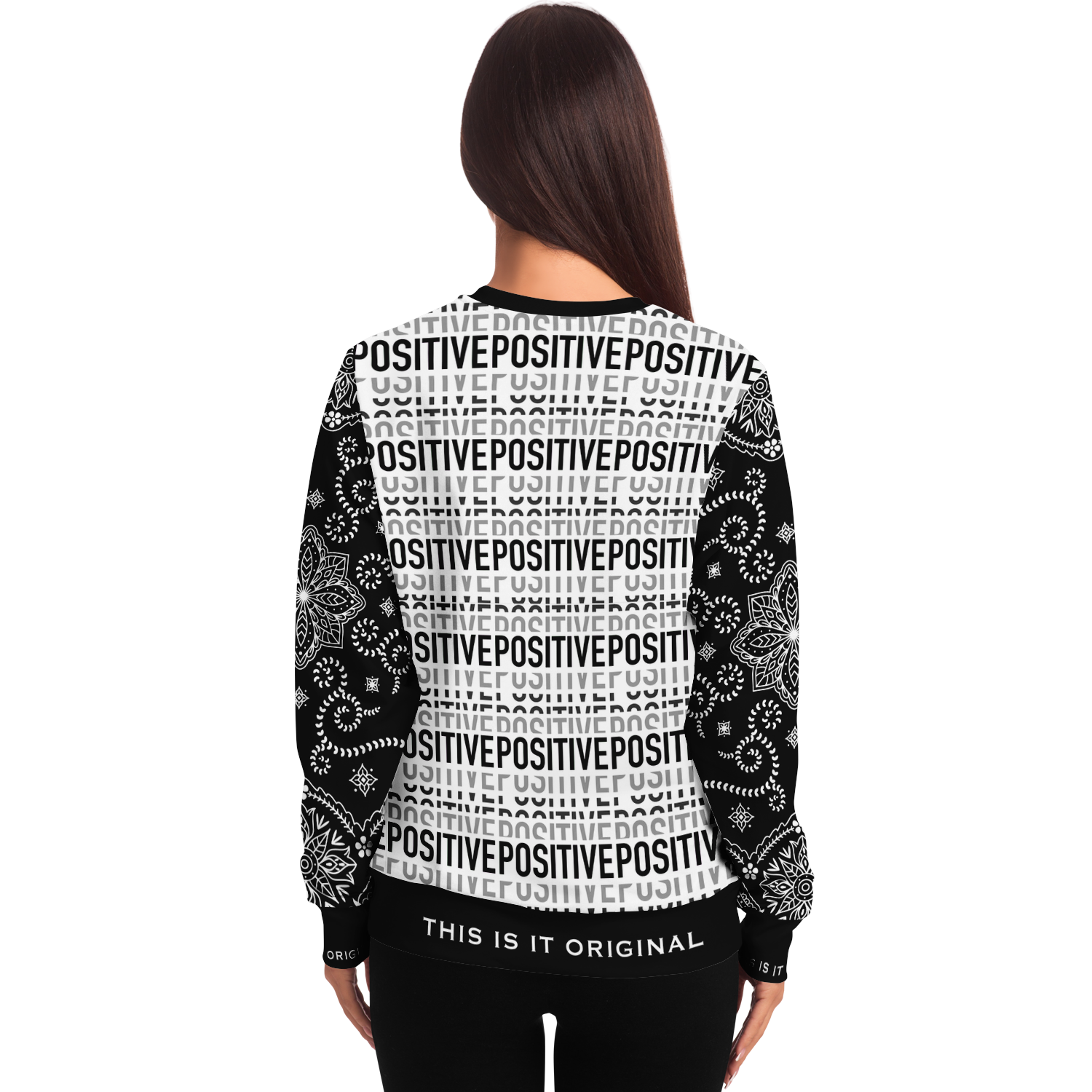 Fresh White & Black Positive Design X Black Paisley Bandana Style Luxury Fashion Sweatshirt