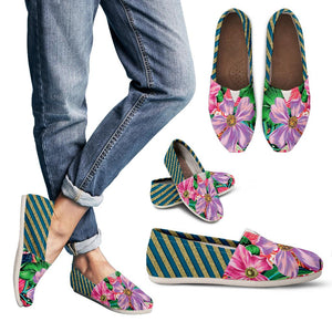 Glittering Flowers With Golden Stripes Women's Casual Shoes