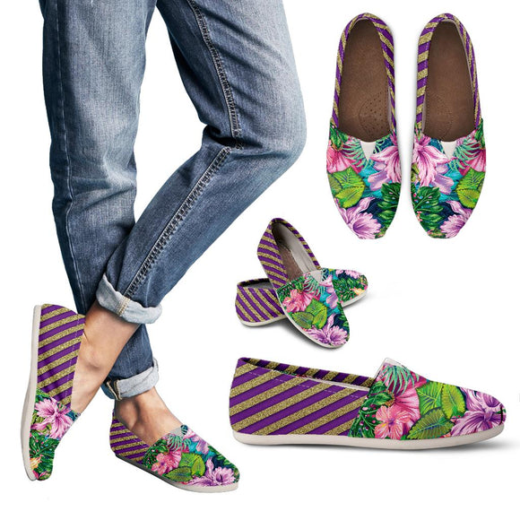 Glittering Summer Flowers With Purple Stripes Women's Casual Shoes
