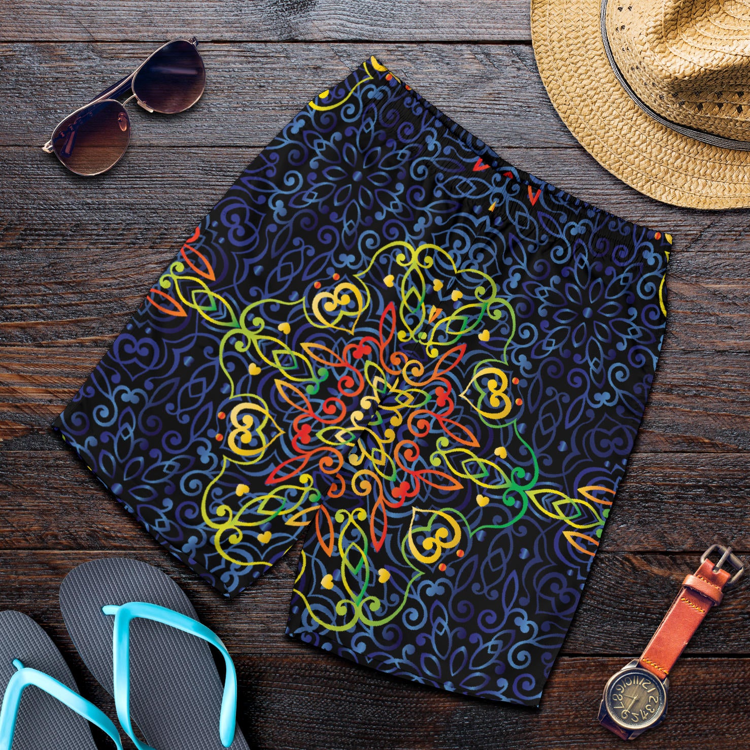 Glowing Rasta Mandala Men's Shorts