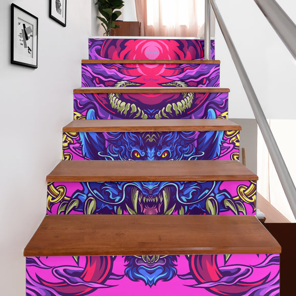 Hypnotic Cartoon Neon Devil Stair Stickers (Set of 6)
