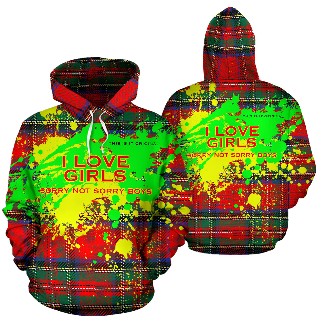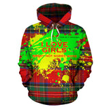I love girls. Luxury Neon Vibe Abstract Design With Classic Tartan Style All Over Hoodie