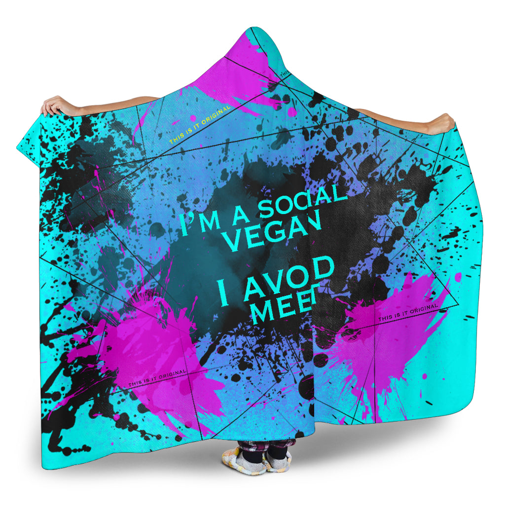I'm a social vegan. I avoid meet. Street Art Design Hooded Blanket