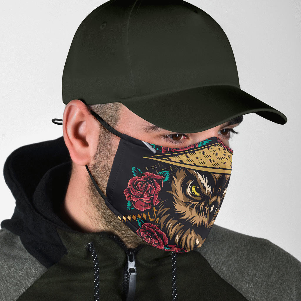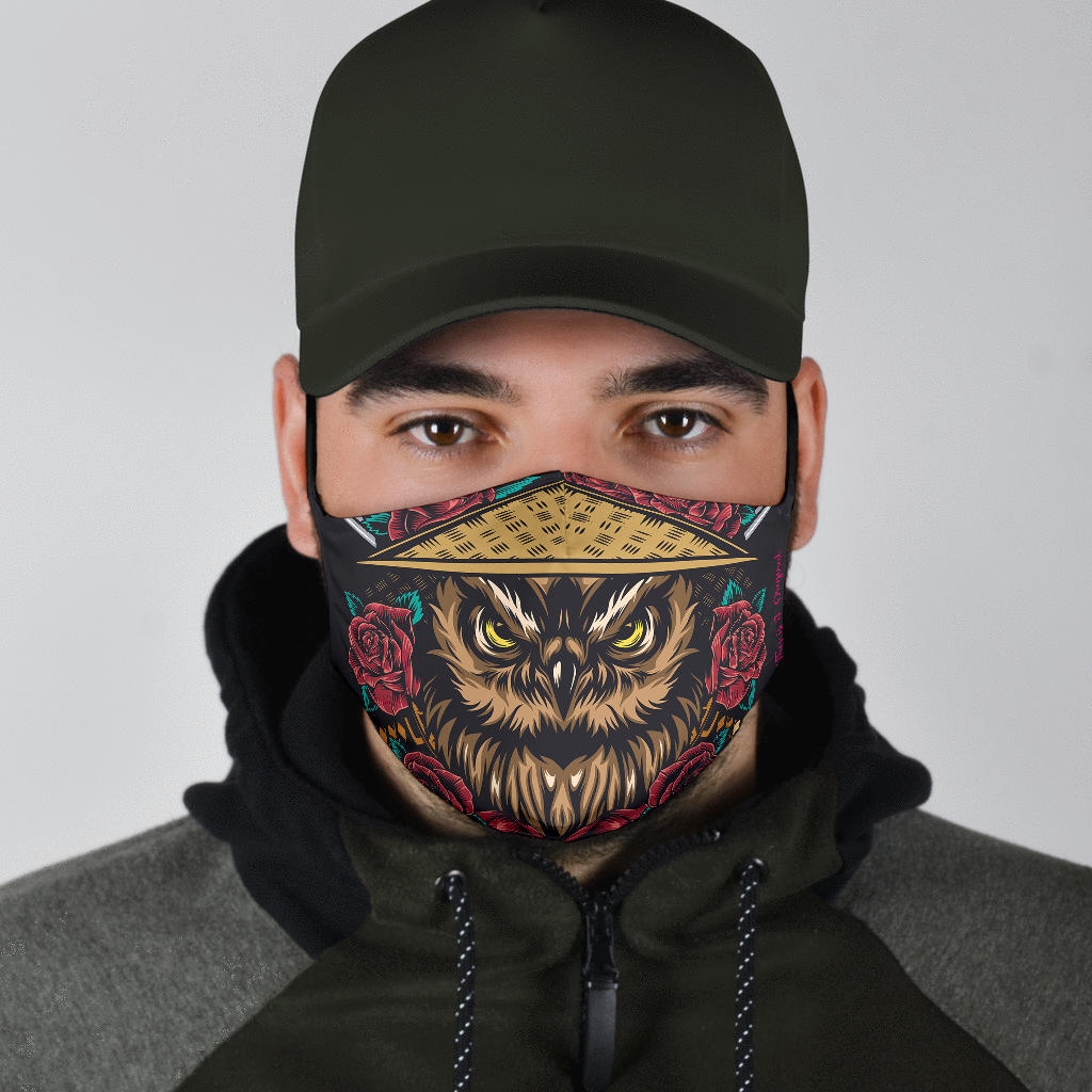 Japanese Ninja Style Owl & Roses Protection Face Mask