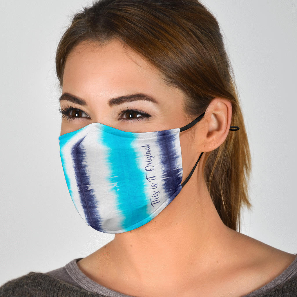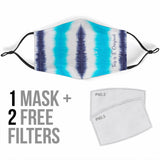 Light Blue & Dark Blue Stripes Tie Dye Design Protection Face Mask