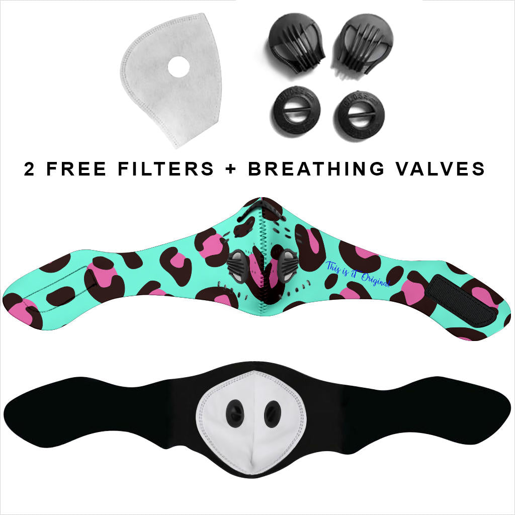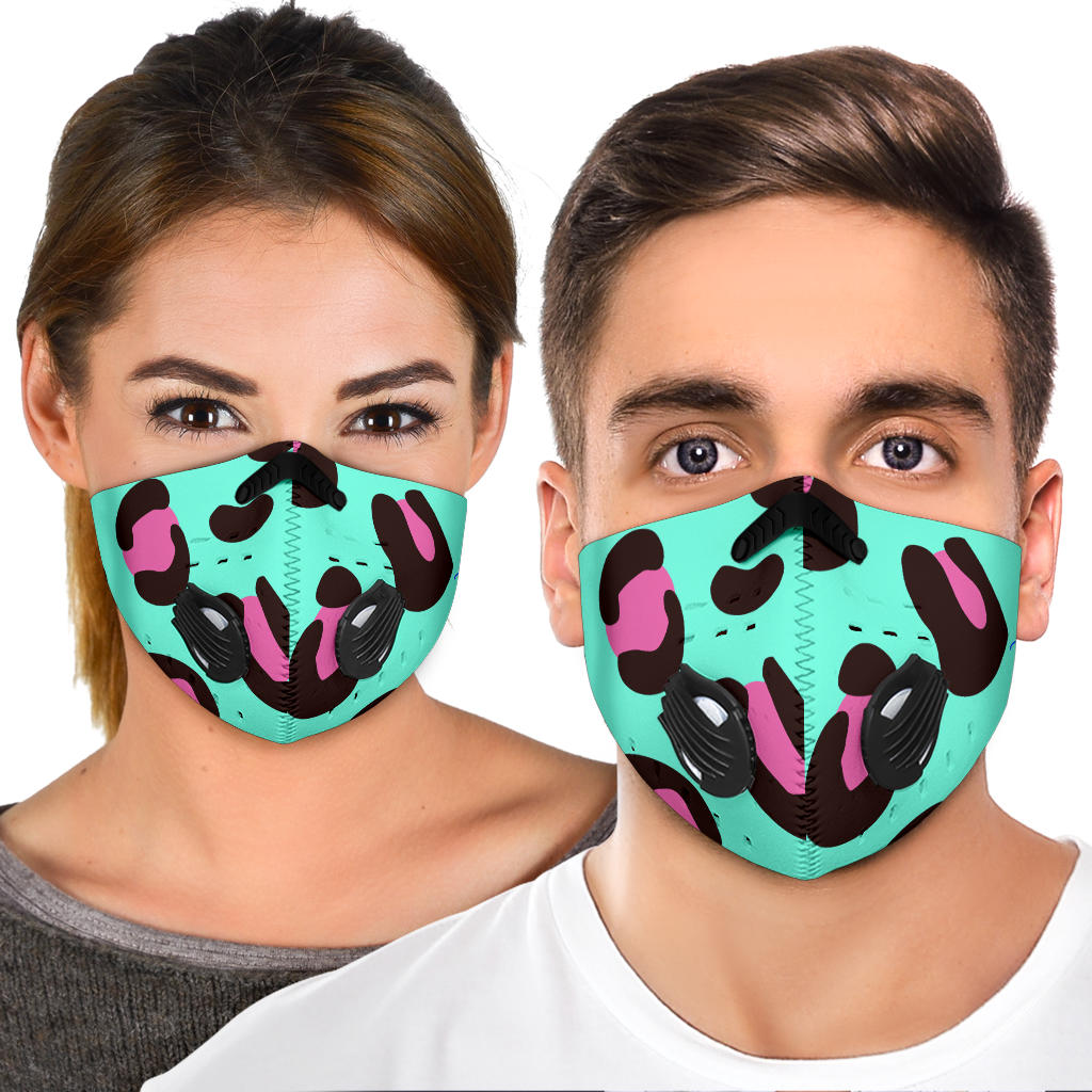 Light Blue & Pink Neon Colorful Leopard Design Skin Premium Protection Face Mask