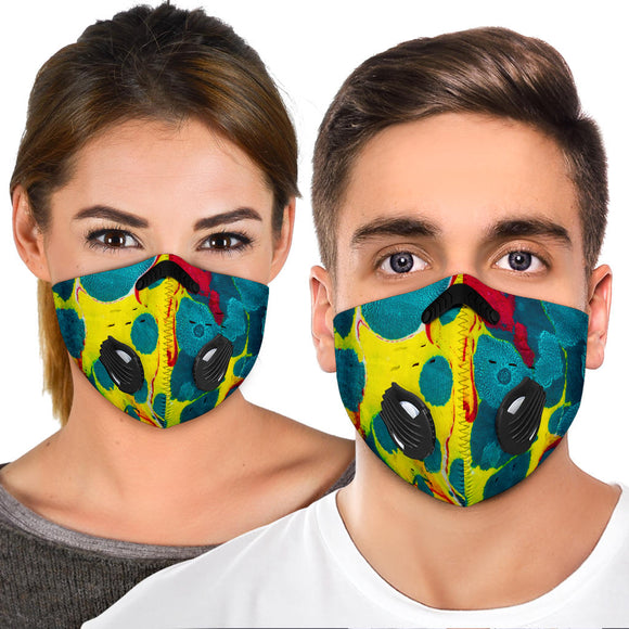Light Blue & Yellow Bubble Art Design Premium Protection Face Mask
