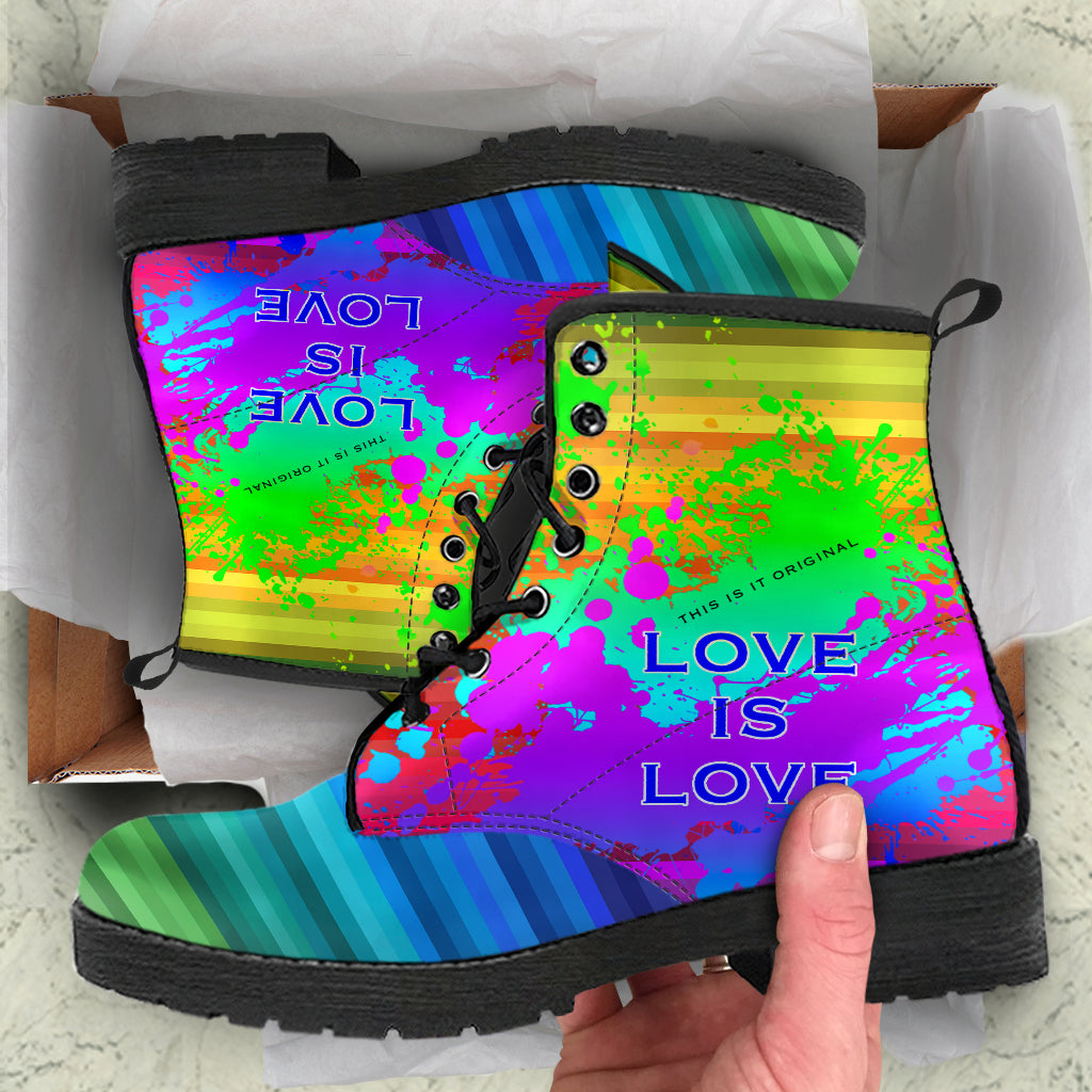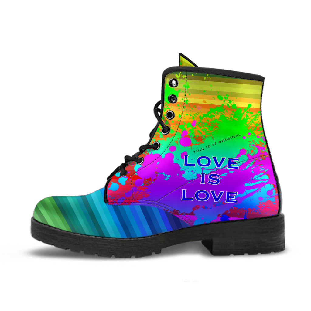Love is Love. Rainbow Design Art With Neon Splash Leather Boots