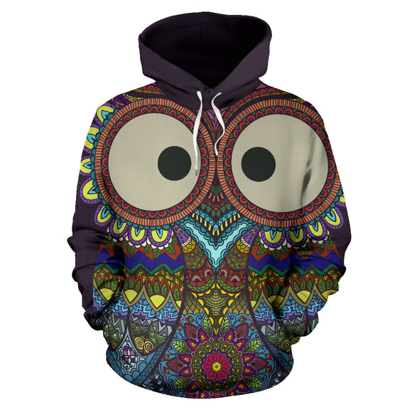 Lovely Big Eye Colorful Owl All Over Hoodie