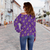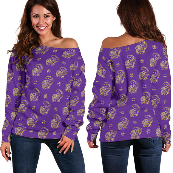 Lucky Purple Elephant Women's Off Shoulder Sweater