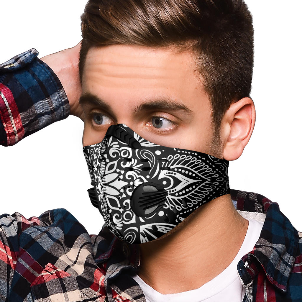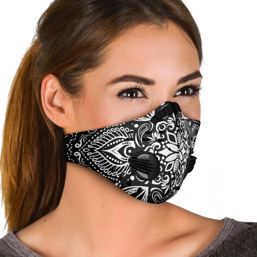 Luxurious Bandana Ornamental Design Black & White Premium Protection Face Mask