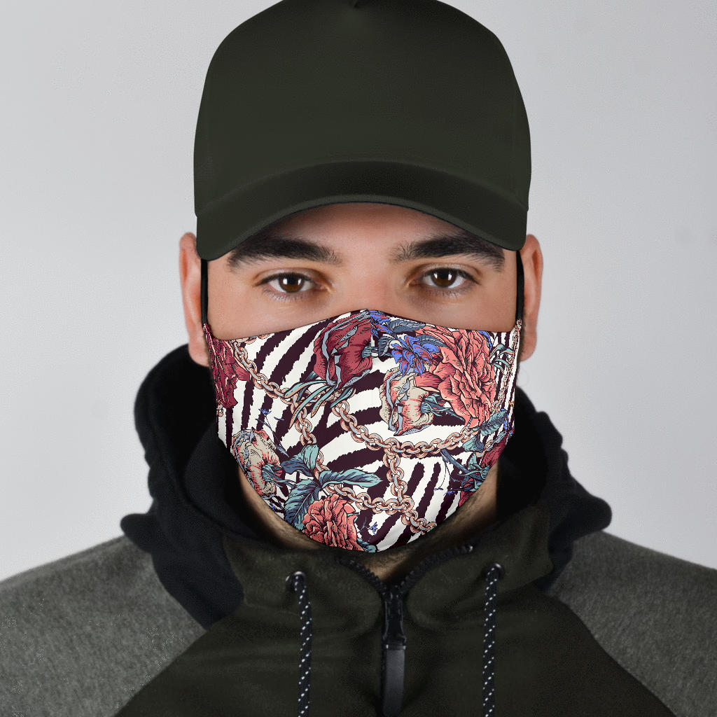 Luxurious Chains on Zebra Pattern with Roses Design Protection Face Mask