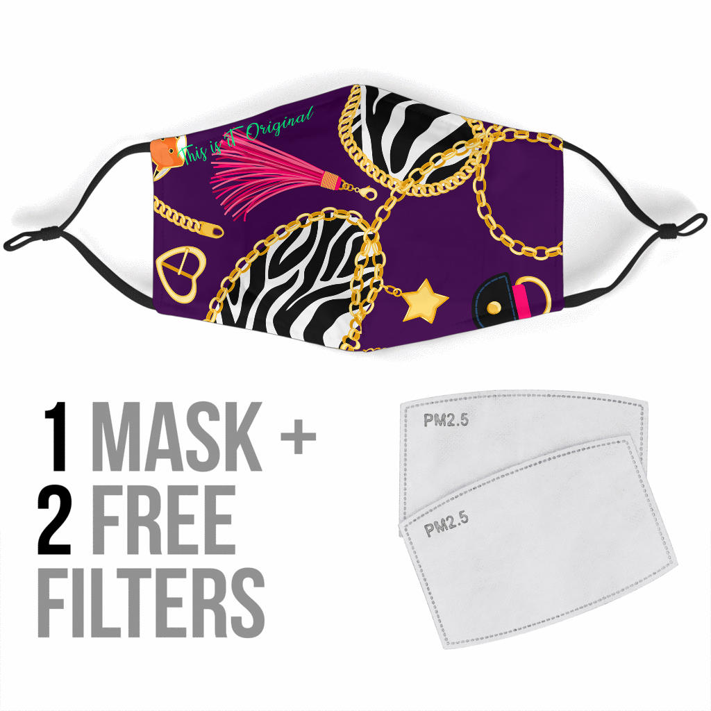 Luxurious Gold Chains With Zebra Pattern Design Protection Face Mask
