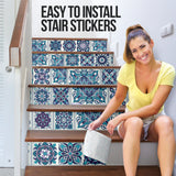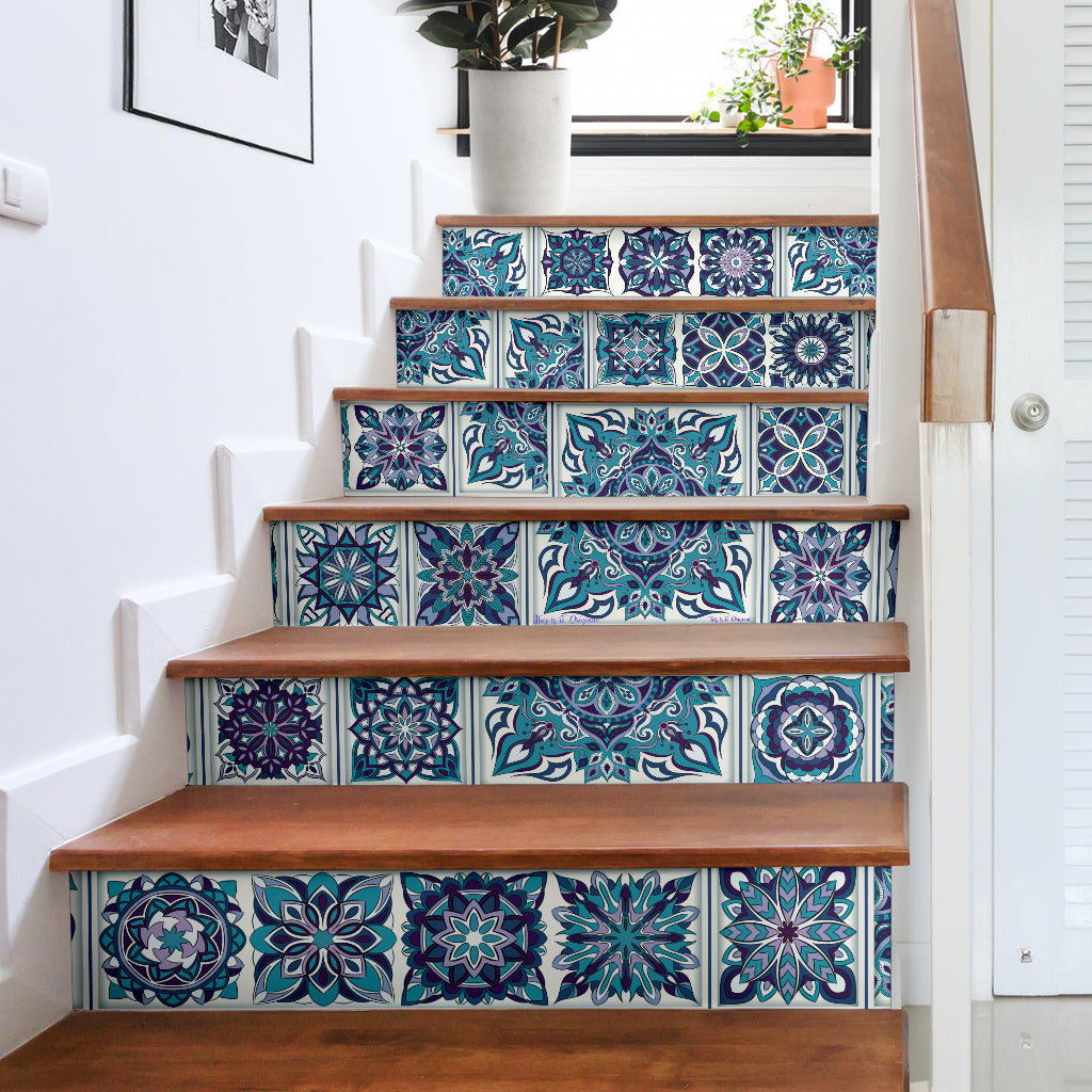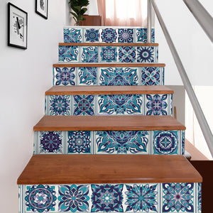 Luxurious Home Decor Rare Blue Mandala Mosaic Style Stair Stickers (Set of 6)