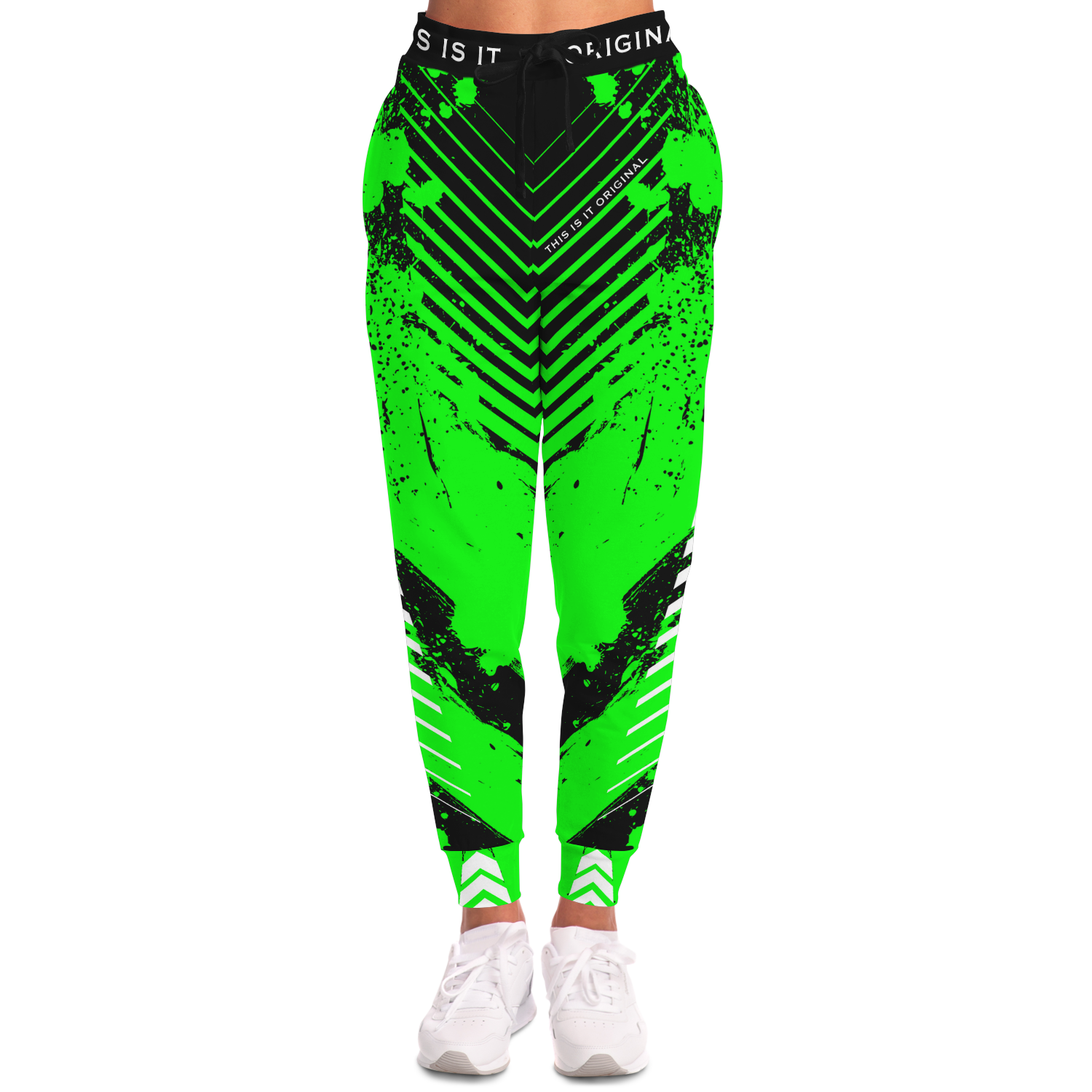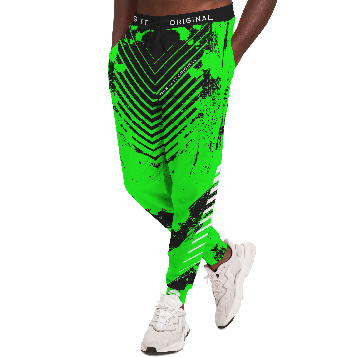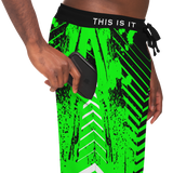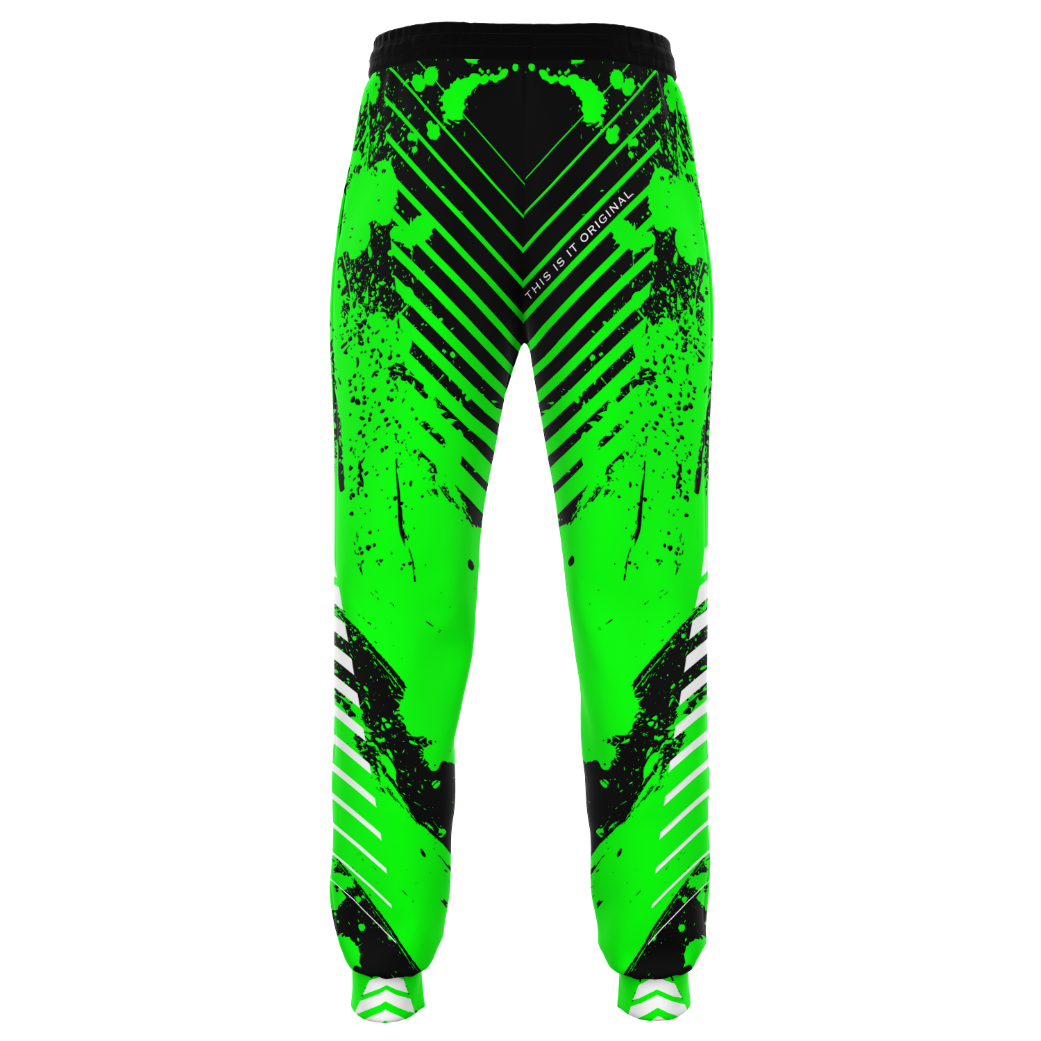 Luxurious Racing Style - Neon Green & Black Stripes Design Fashion Pants