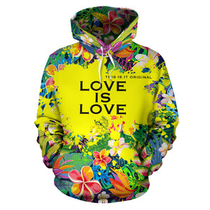 Luxury Floral - Tropical design Style Hoodie with Quote by Emotions. LOVE IS LOVE