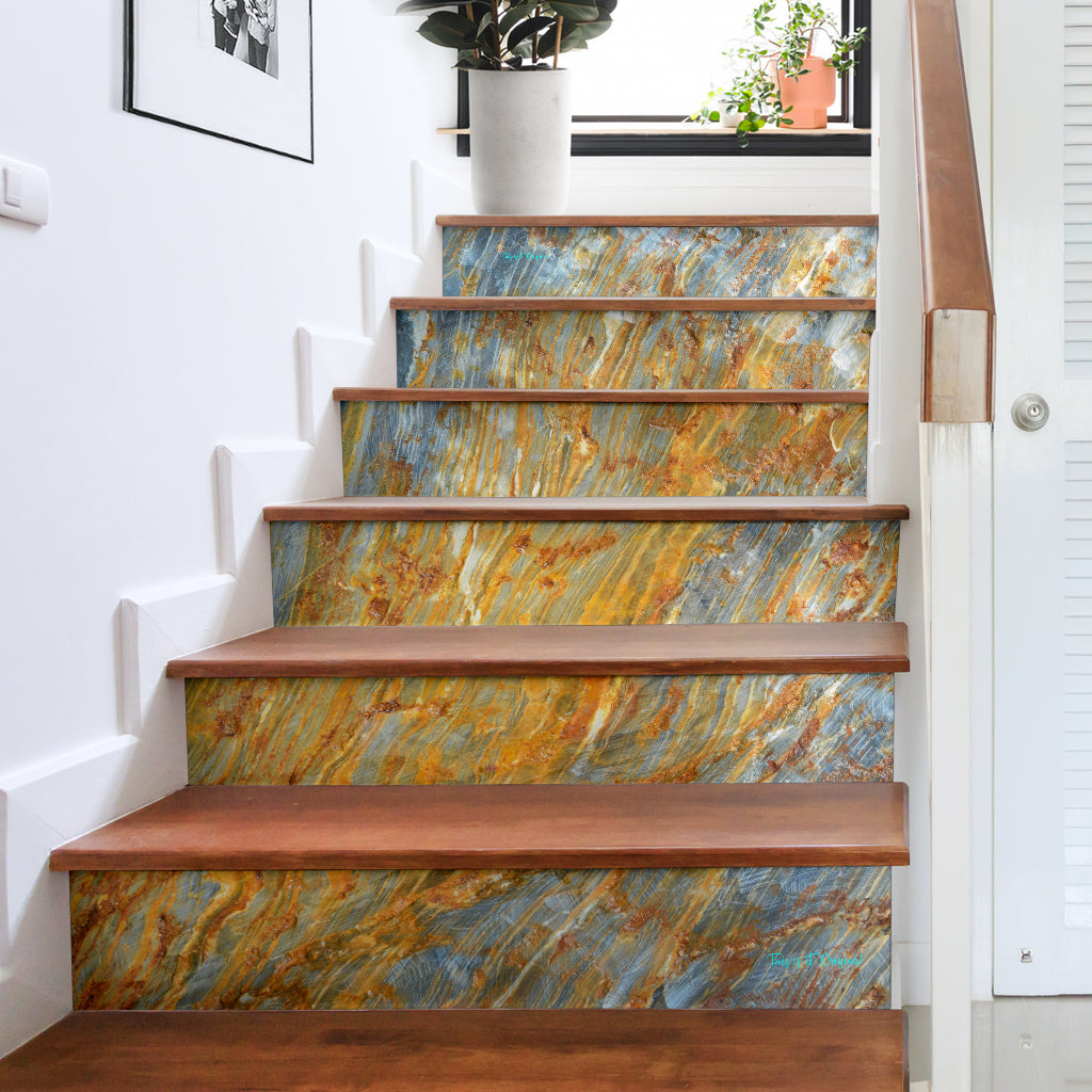 Luxury Gold Marble Design Decoration Art Stair Stickers (Set of 6)
