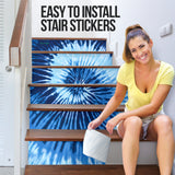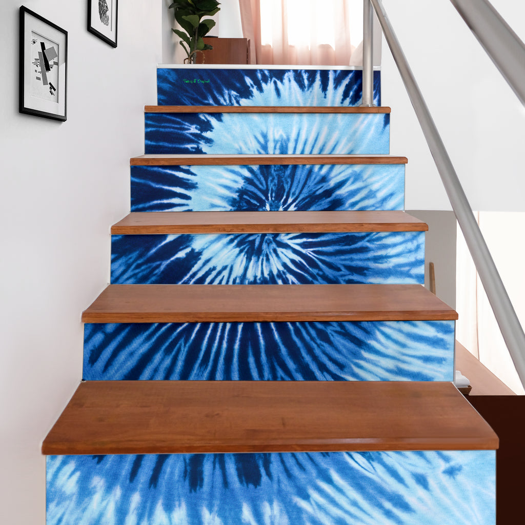 Luxury Light Blue Tie Dye Design Stair Stickers ( Set of 6 )