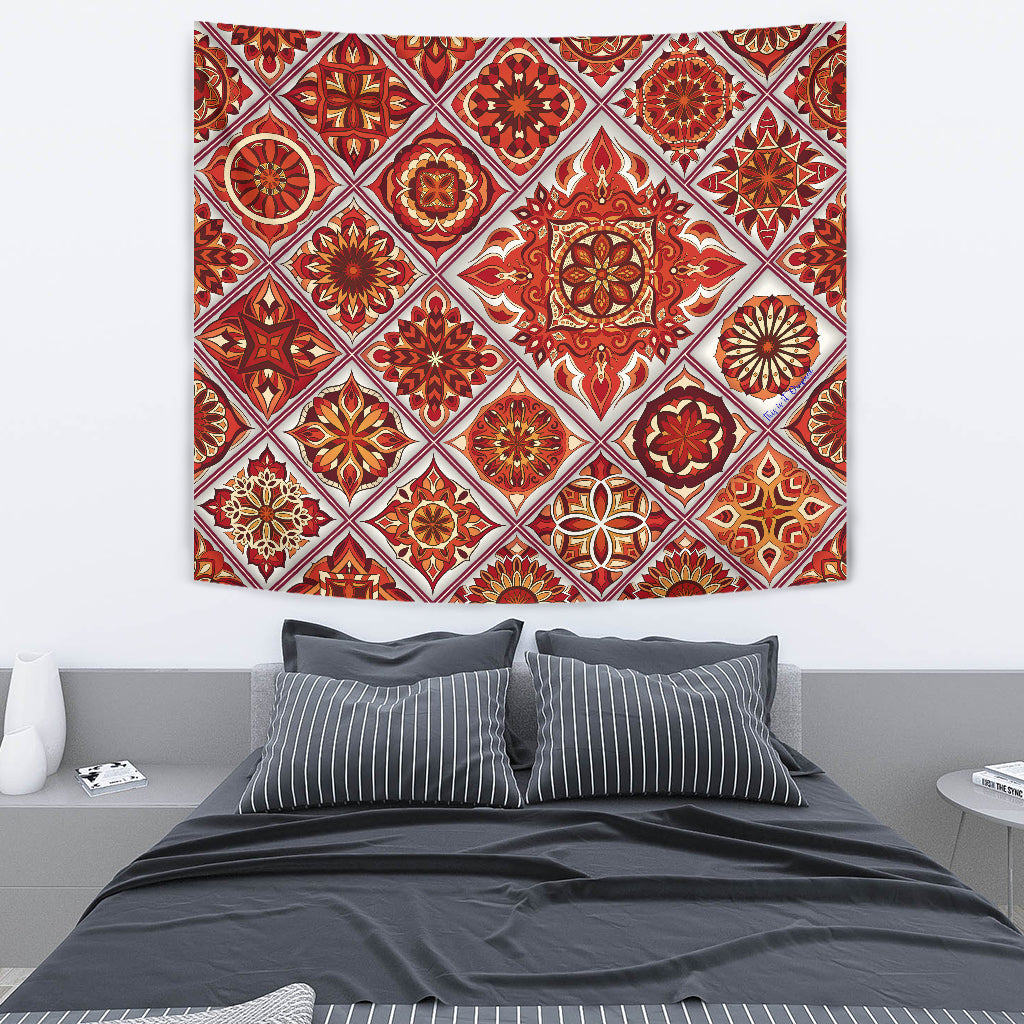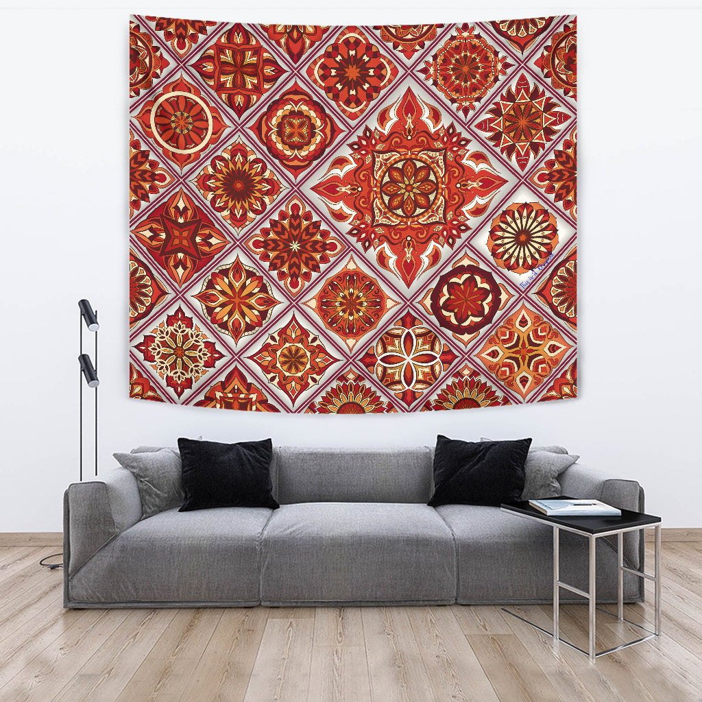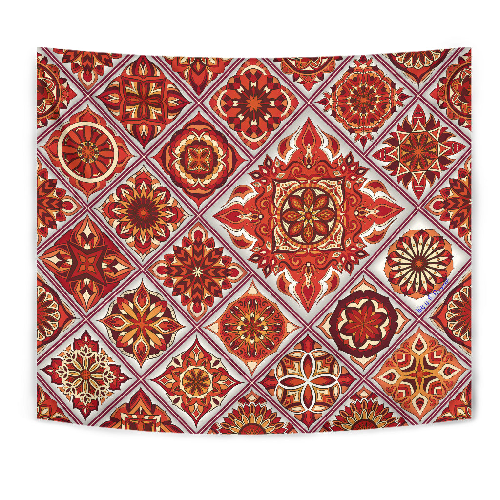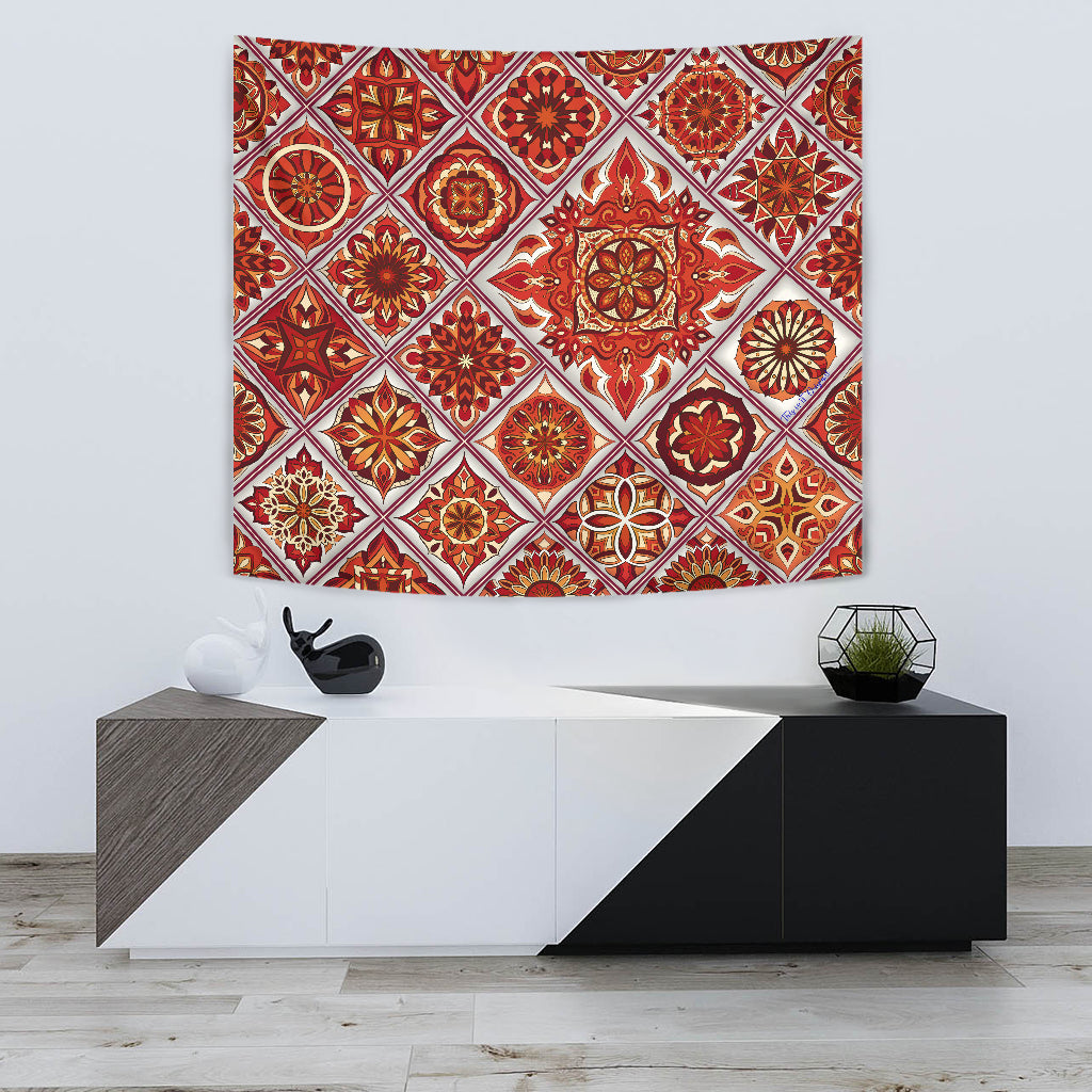 Luxury Magic Fire Red Mosaic Mandala Design Wall Tapestry