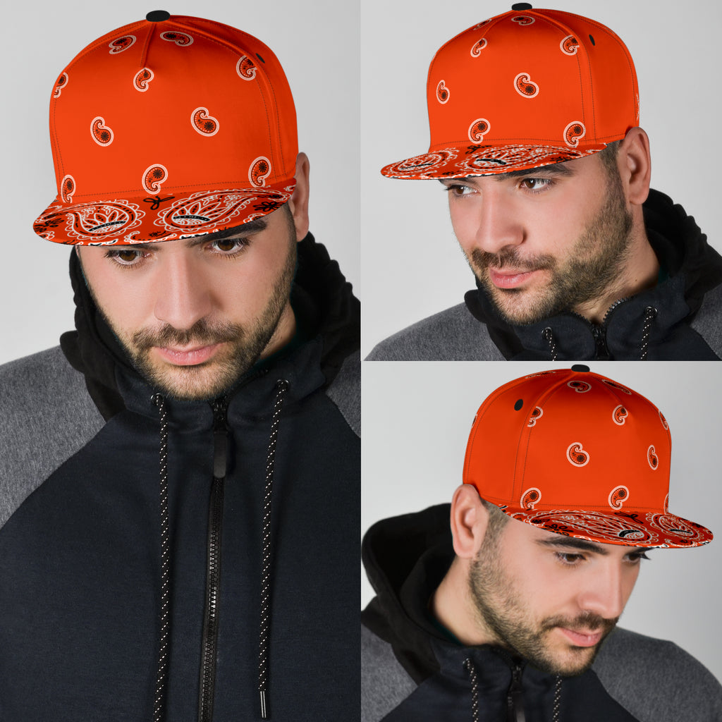 Luxury Royal Orange Bandana Style Paisley Design Snapback Hat