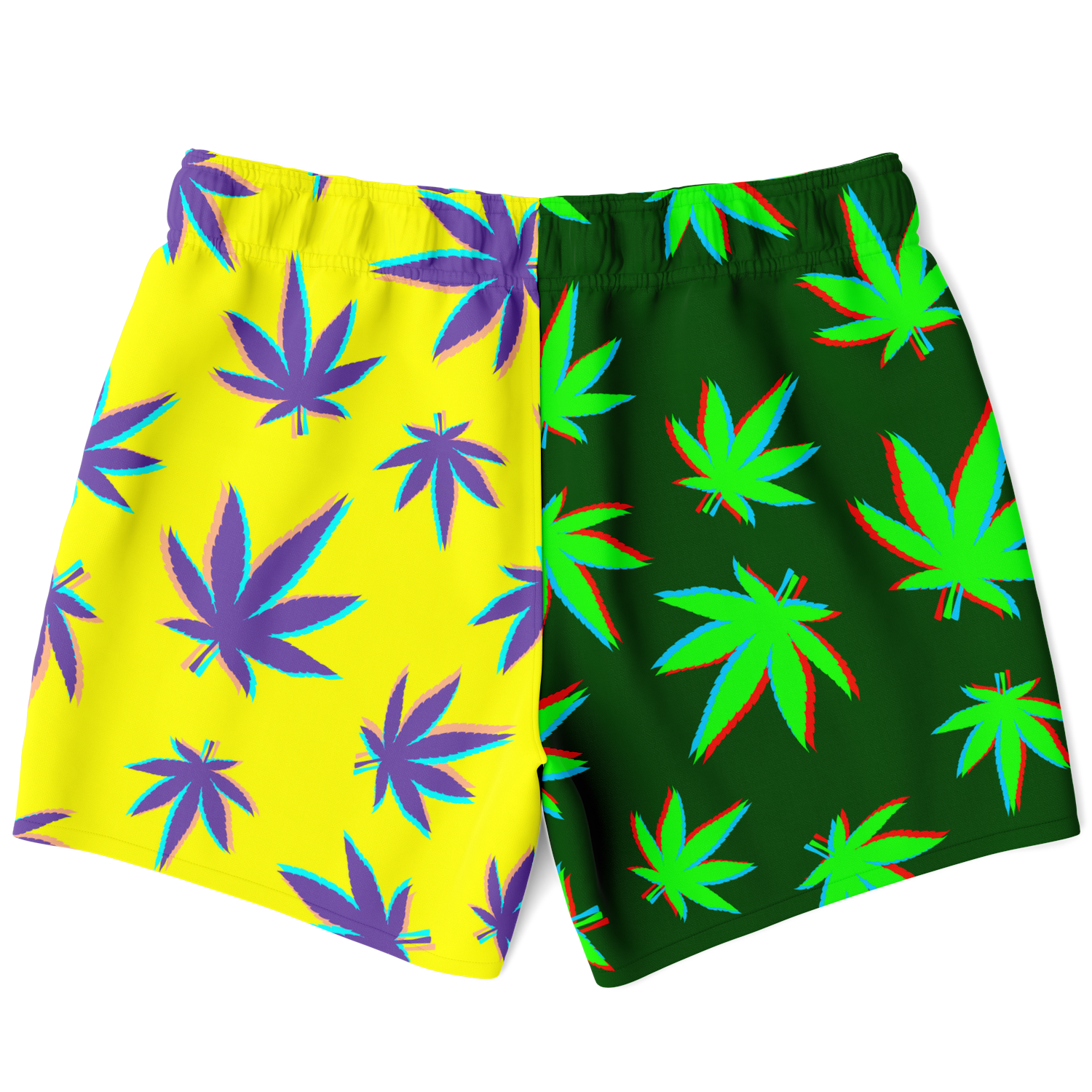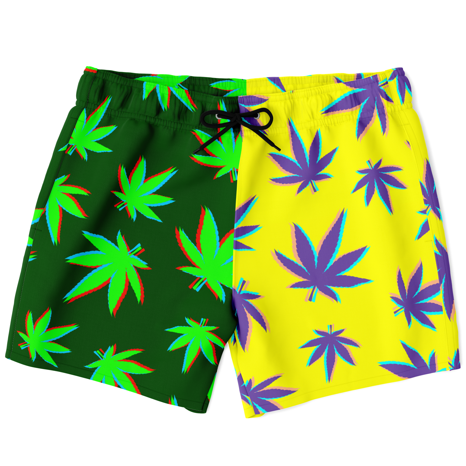 Luxury Weed Yellow & Green Trippy Design Swim Trunks for Men