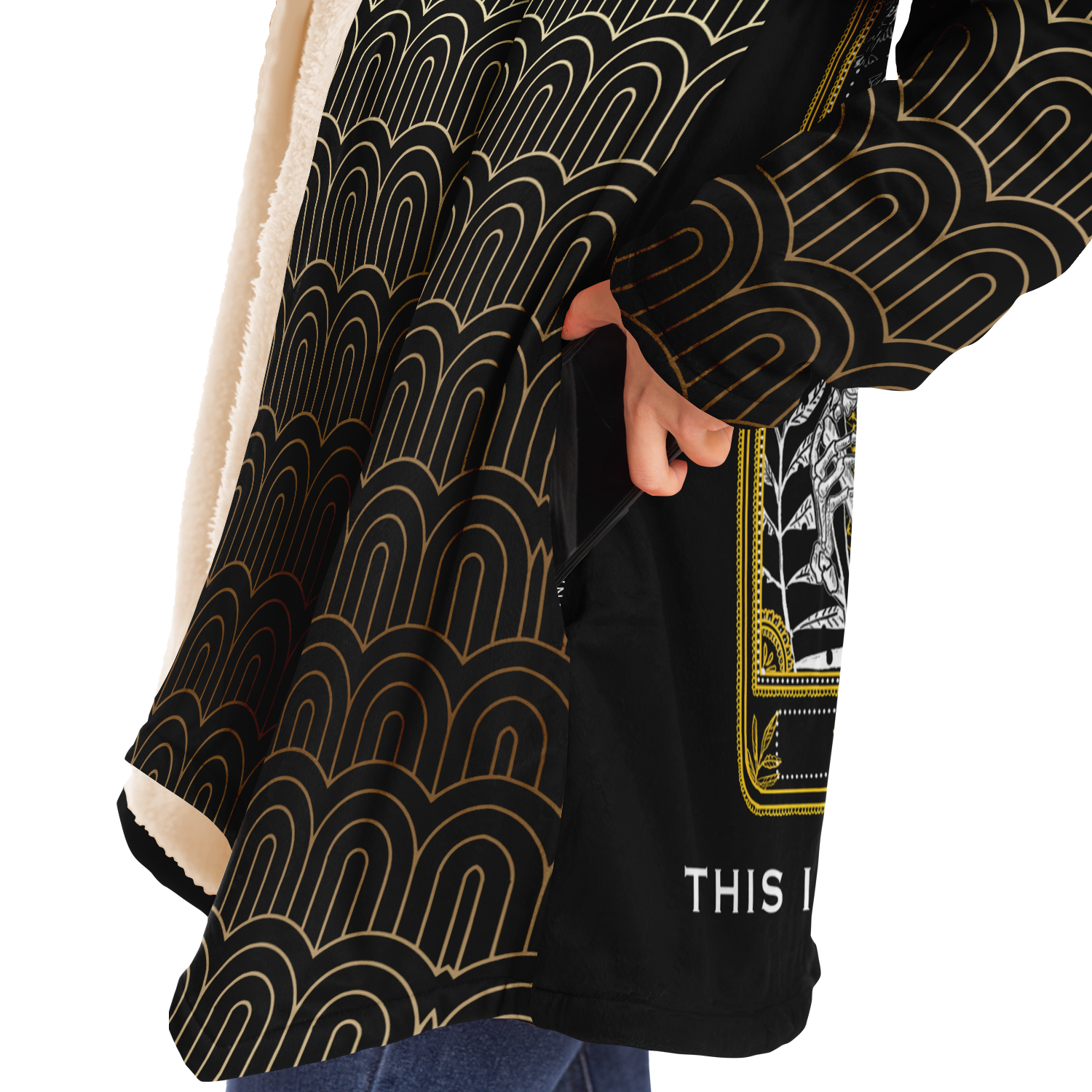 This luxurious cloak is made from an ultra-soft premium microfiber fleece lining. The outside is made with a micro-mink polyester fabric that allows the print to be high definition with vibrant colors. Featuring two deep side pockets to keep your belongings safe and your hands warm.