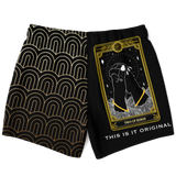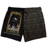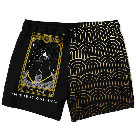 Magic Black & Gold Ornamental Sleeve - Tarot Card "THE TWO RINGS" Luxury Swim Trunks For Men's