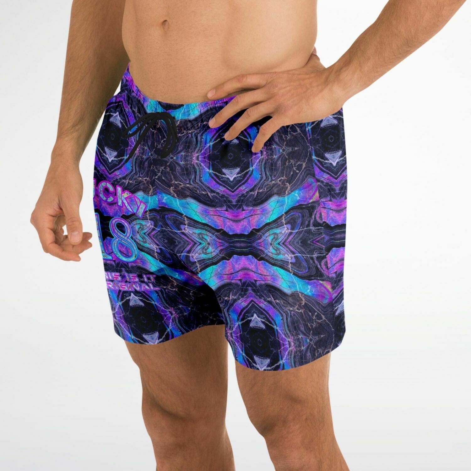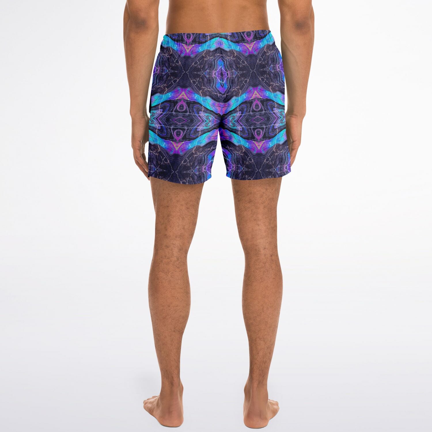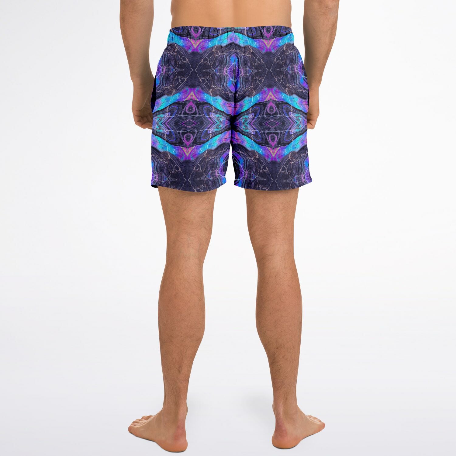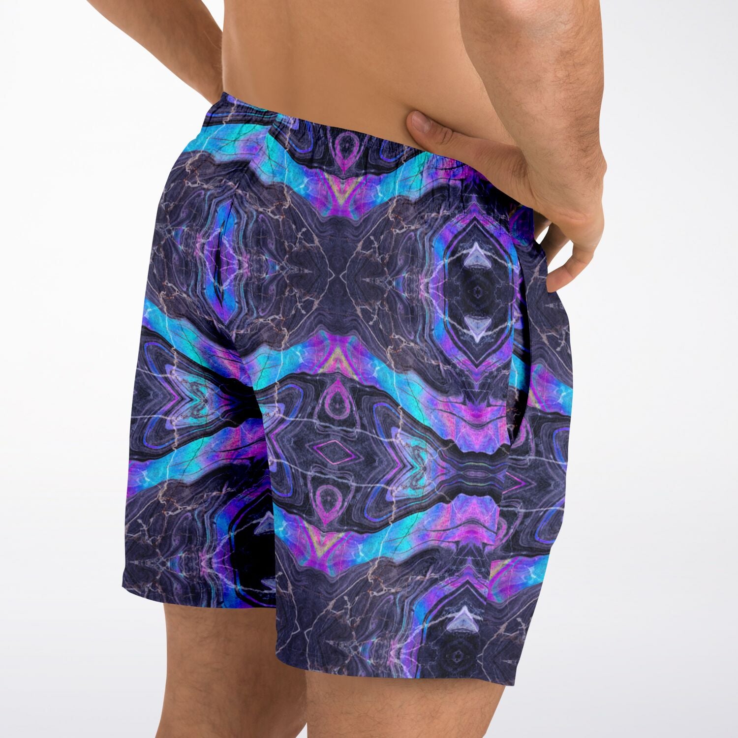 Neon Colors with Black Marble and Galaxy Design on Swim Trunks for Men's