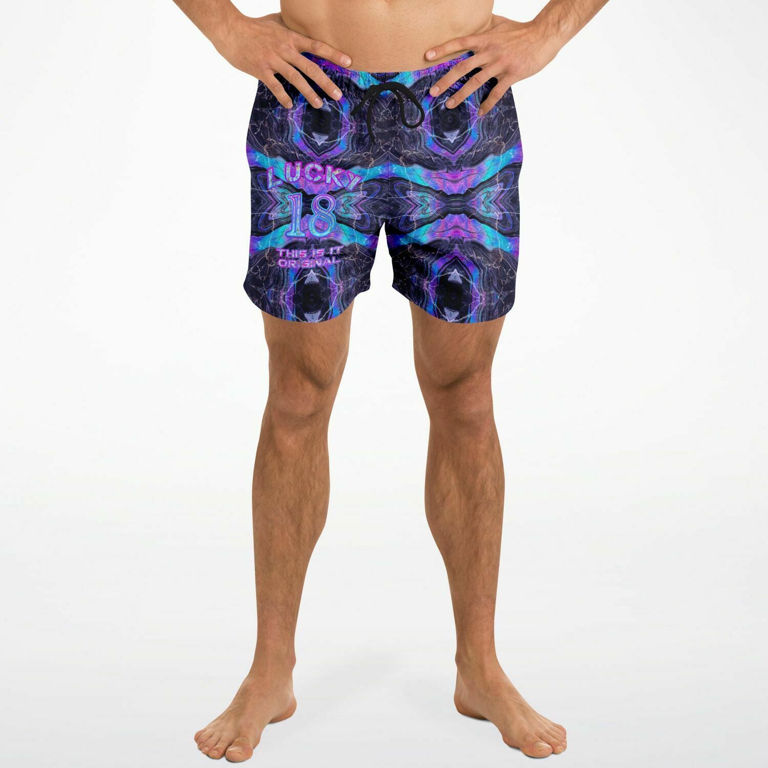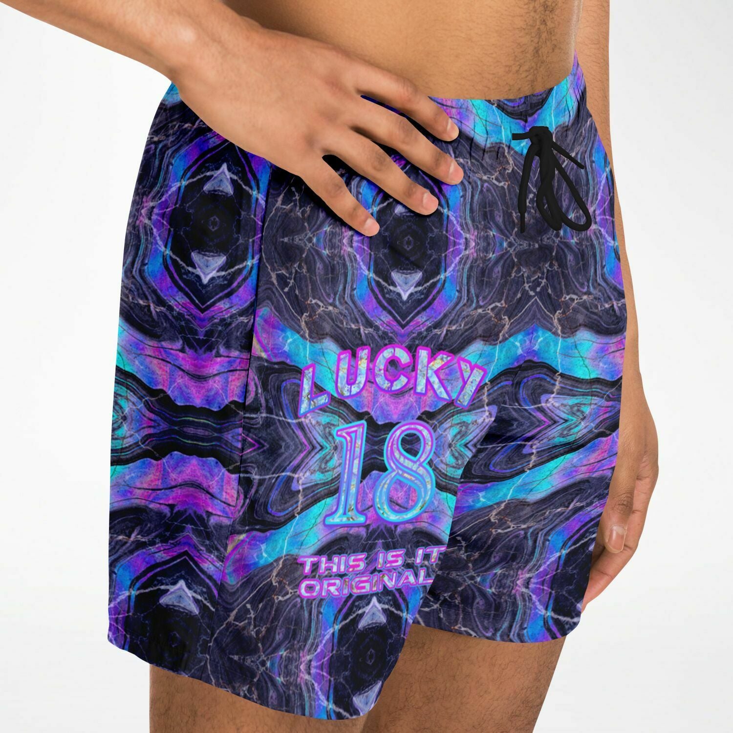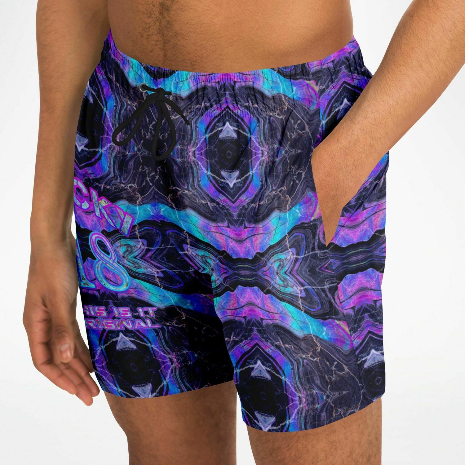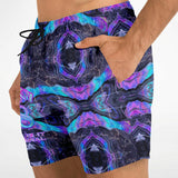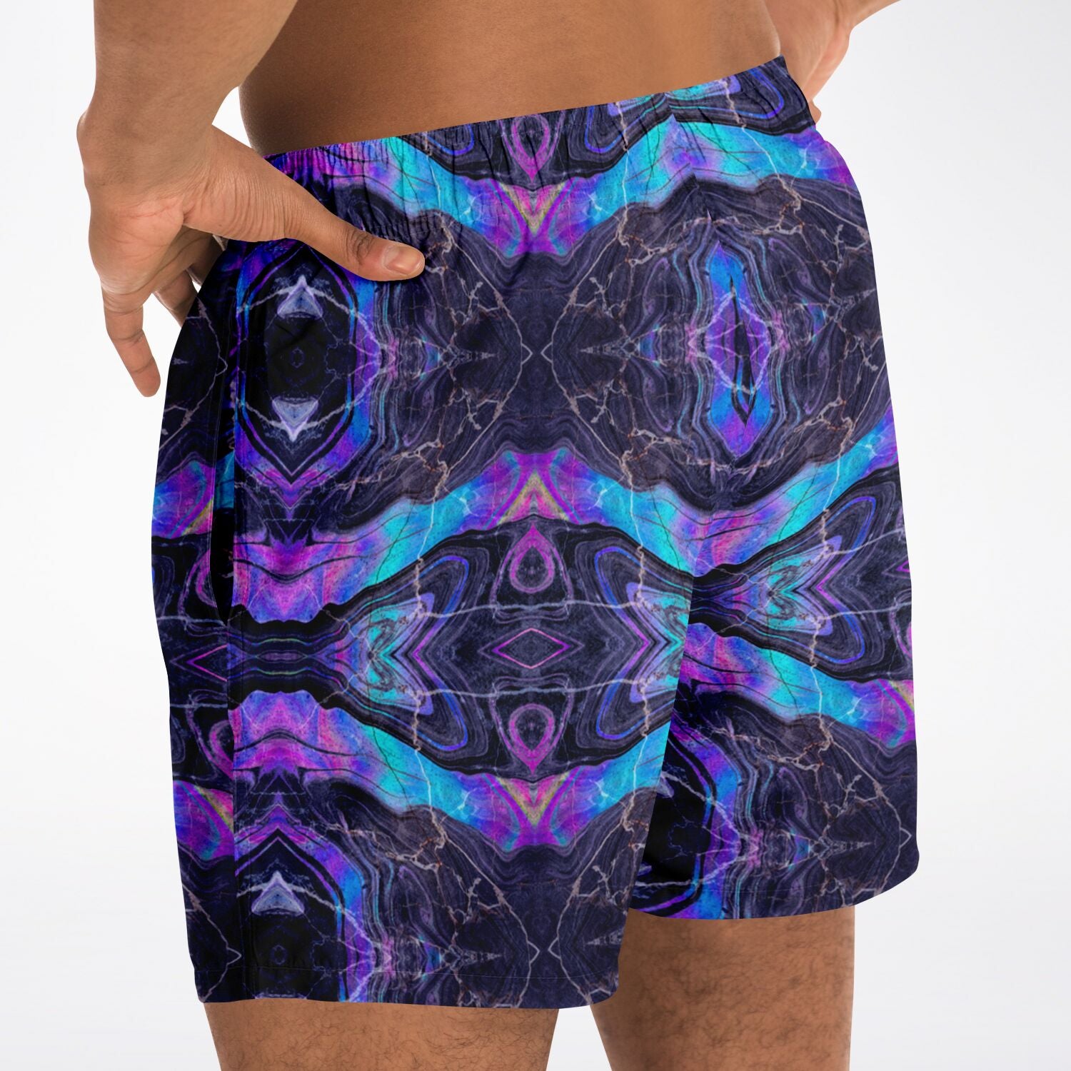 Neon Colors with Black Marble and Galaxy Design on Swim Trunks for Men's