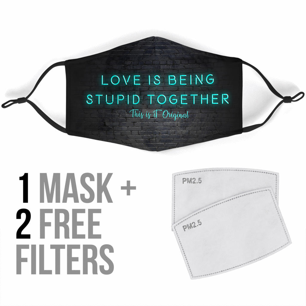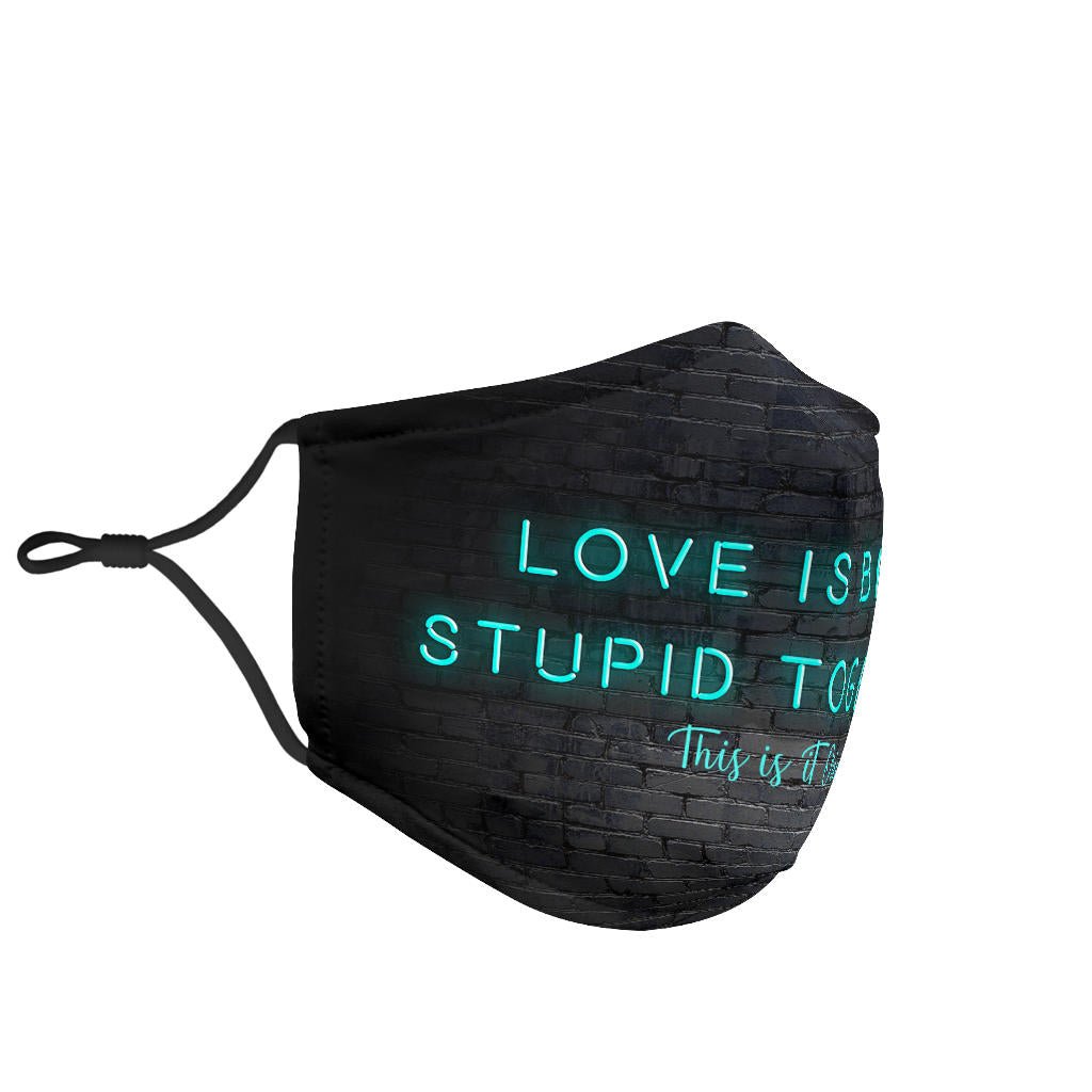 Neon On The Wall Design Love Is Being Stupid Together Protection Face Mask