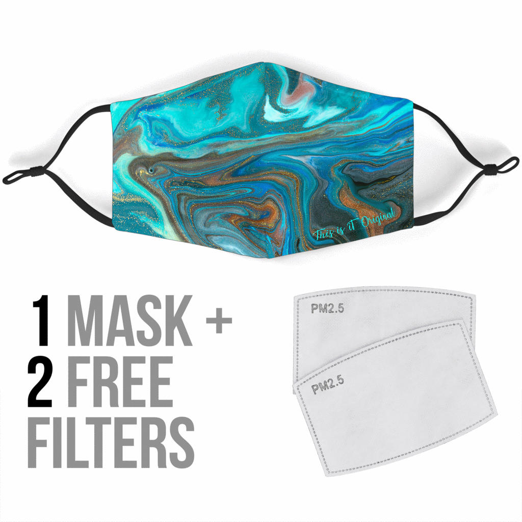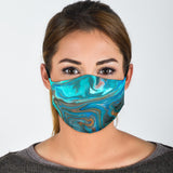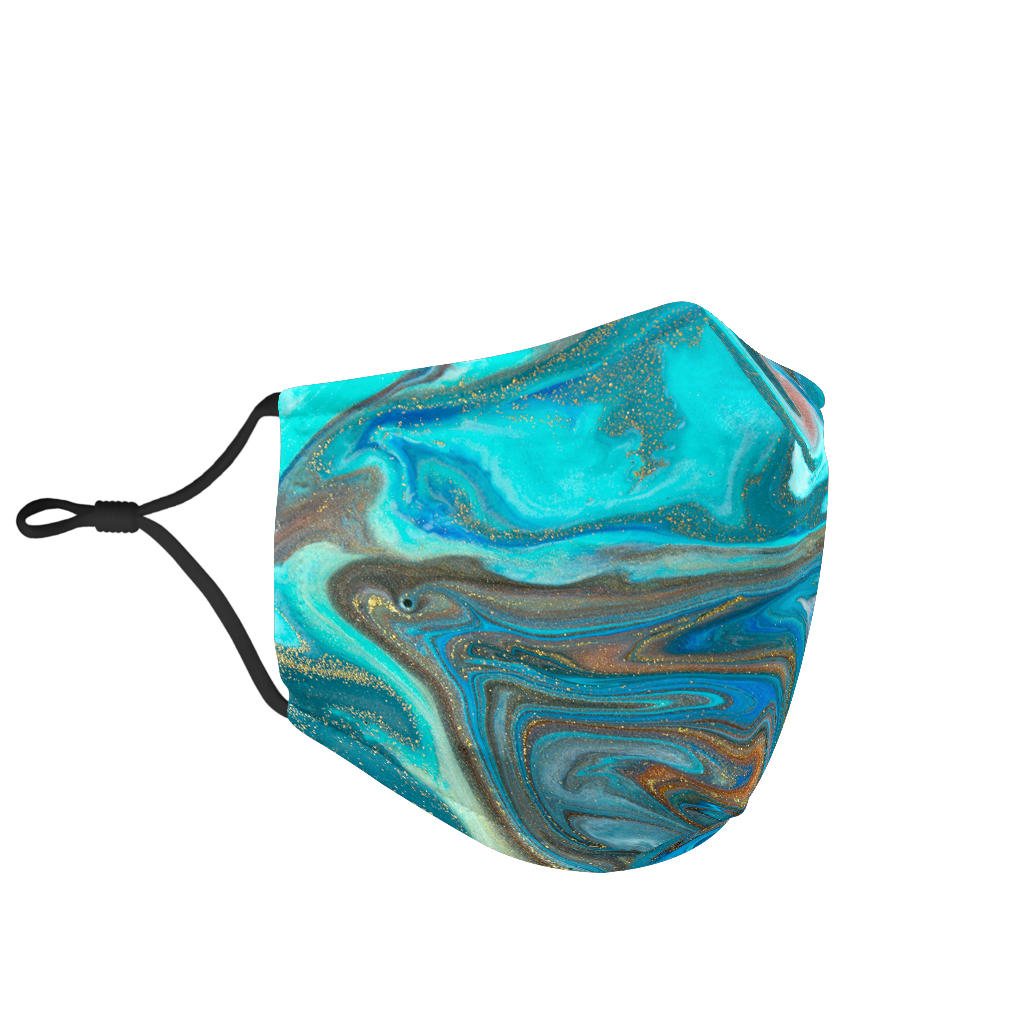 Ocean Blue & Gold Marble Design Protection Face Mask