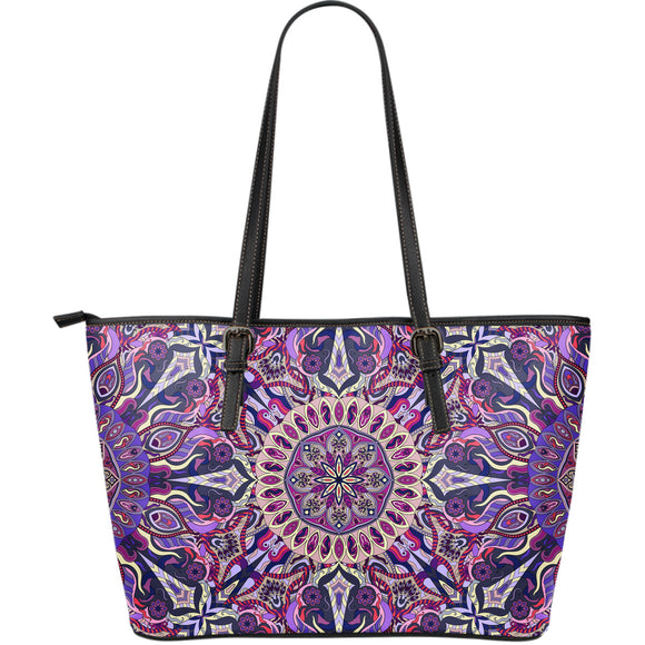 Ornamental Magical Purple Large Leather Tote Bag