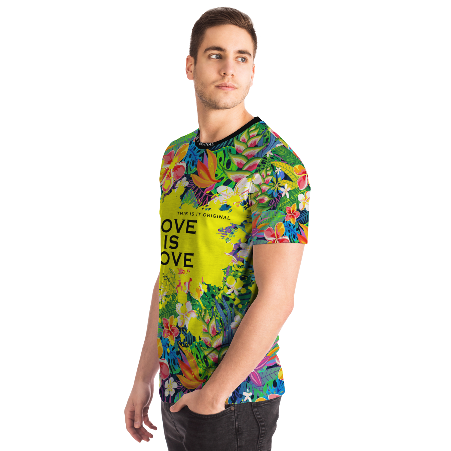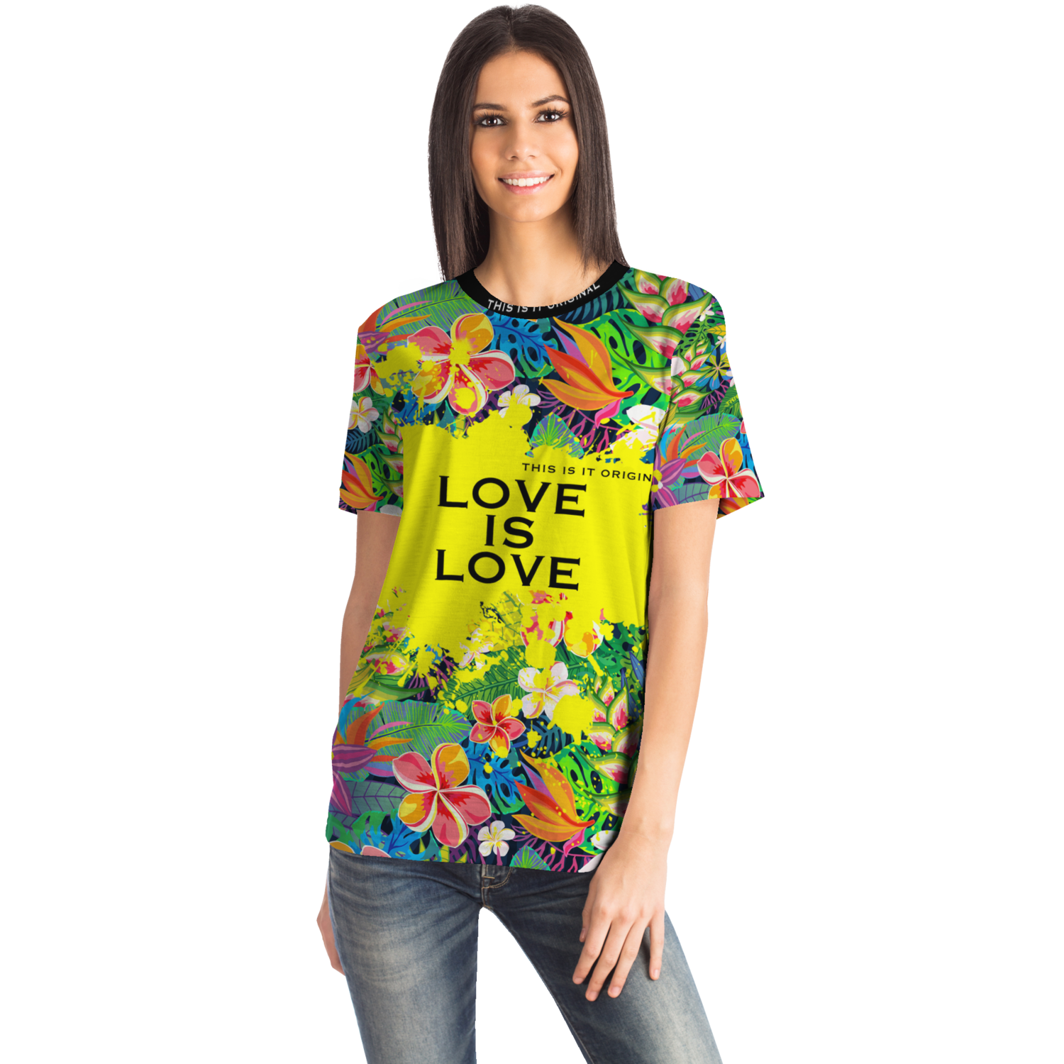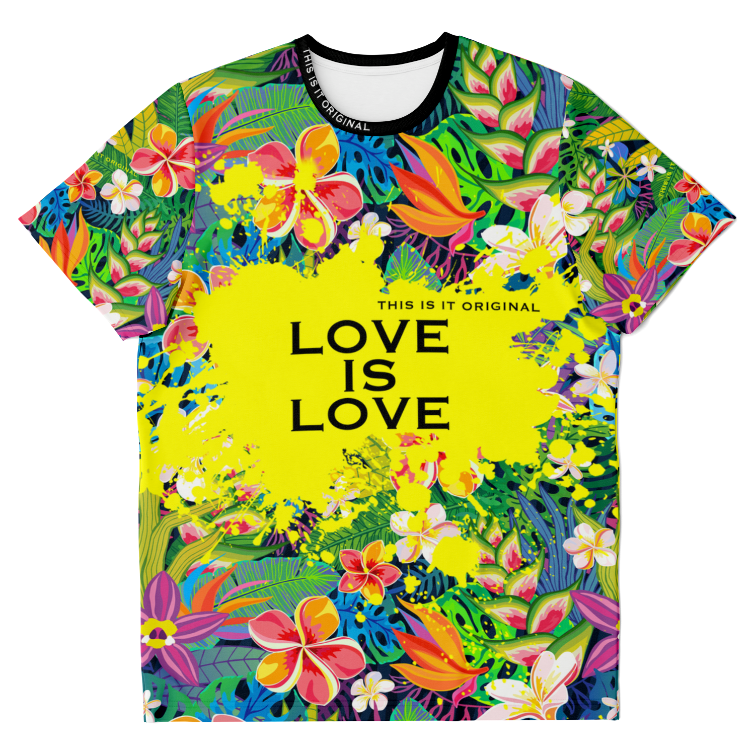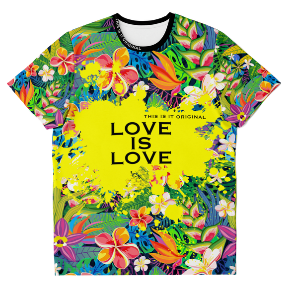 Perfect Tropical Flowers Colorful Design "Love is Love" T-shirt