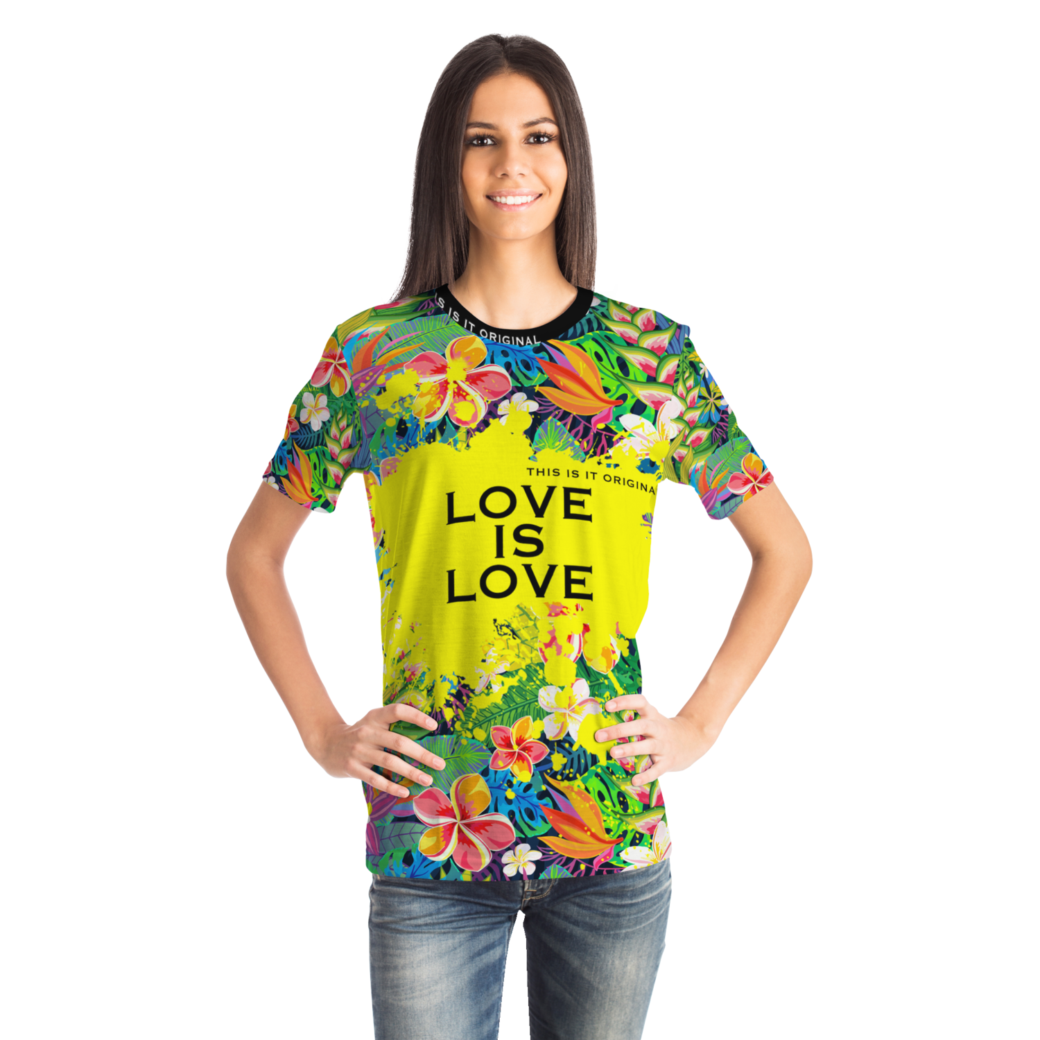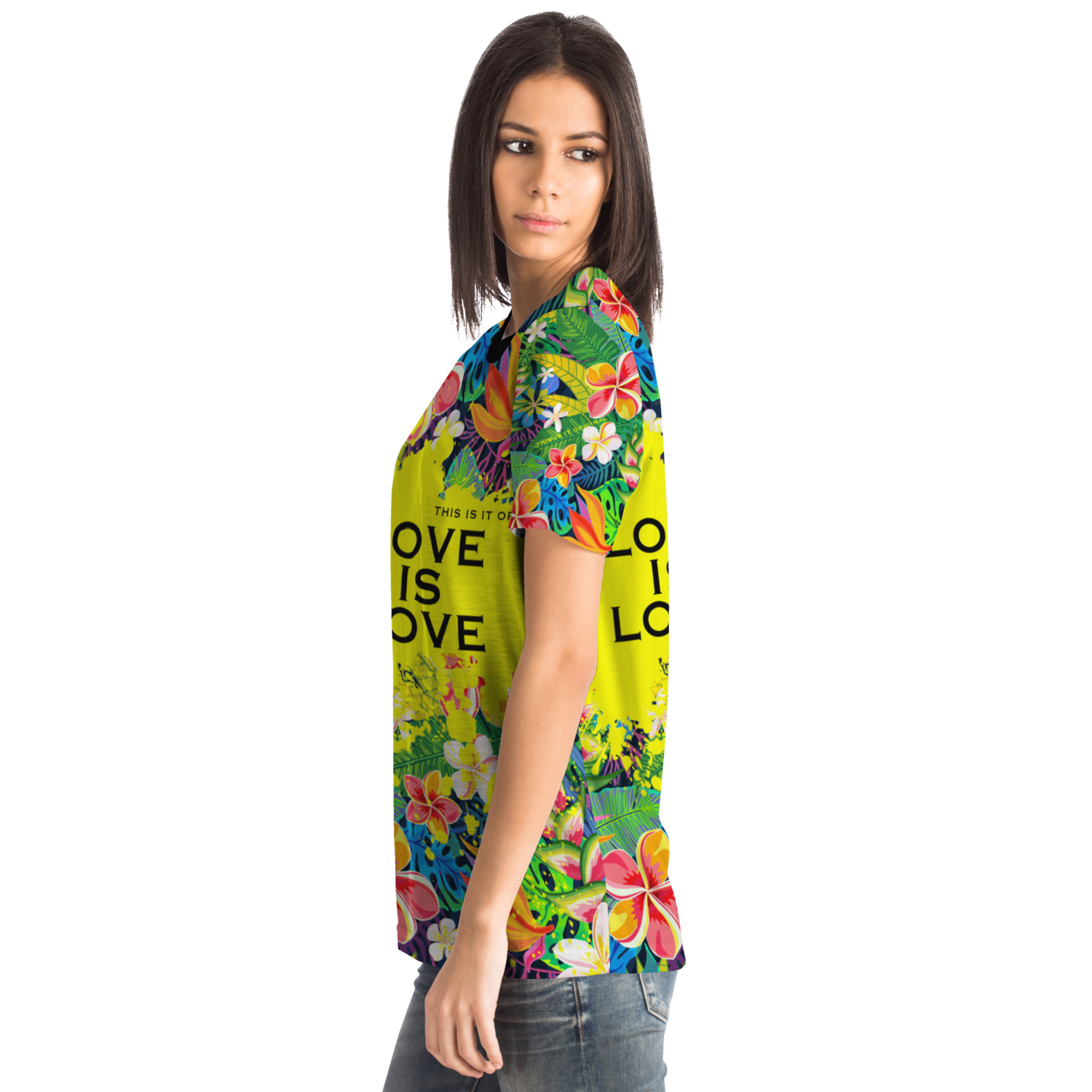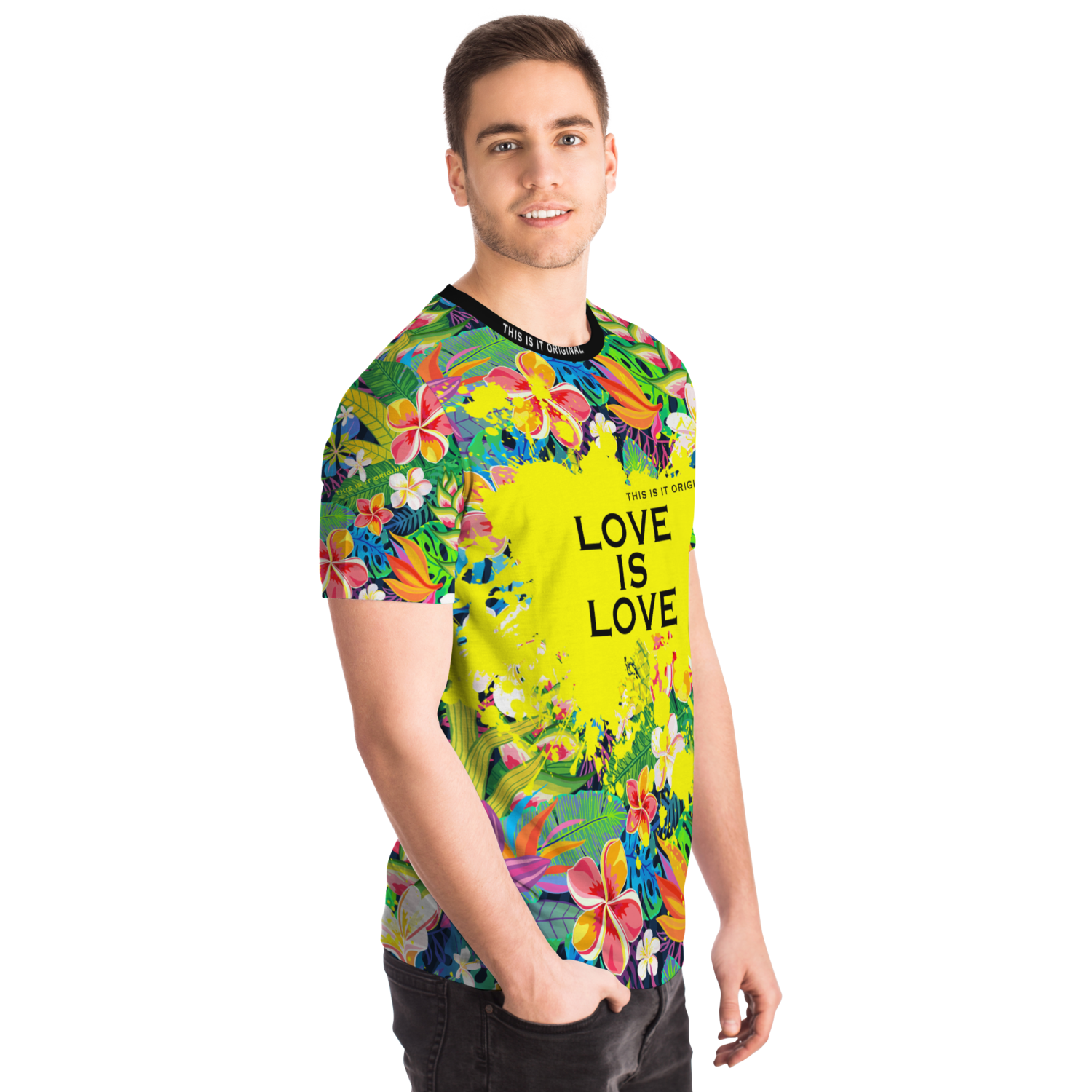 Perfect Tropical Flowers Colorful Design "Love is Love" T-shirt