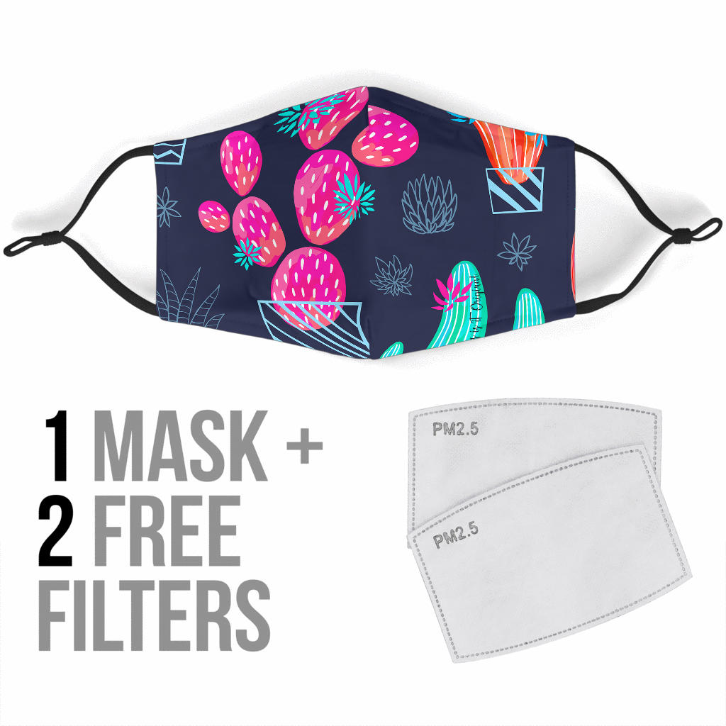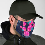 Pink Cactus in Dark Blue Desert Protection Face Mask