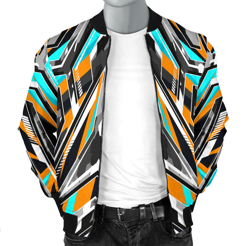 Racing Army Style Orange & light Blue Men's Bomber Jacket