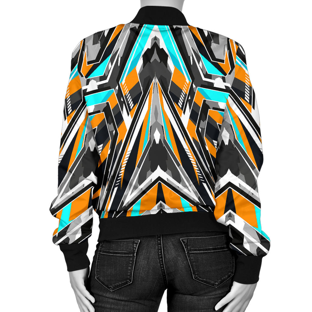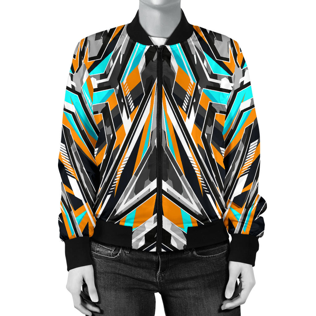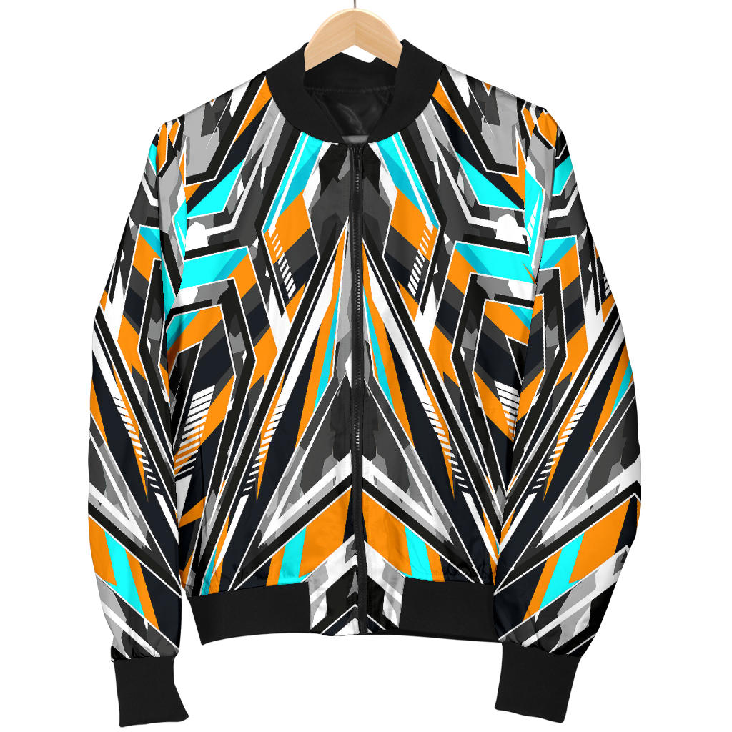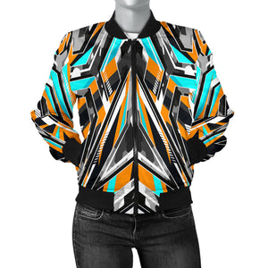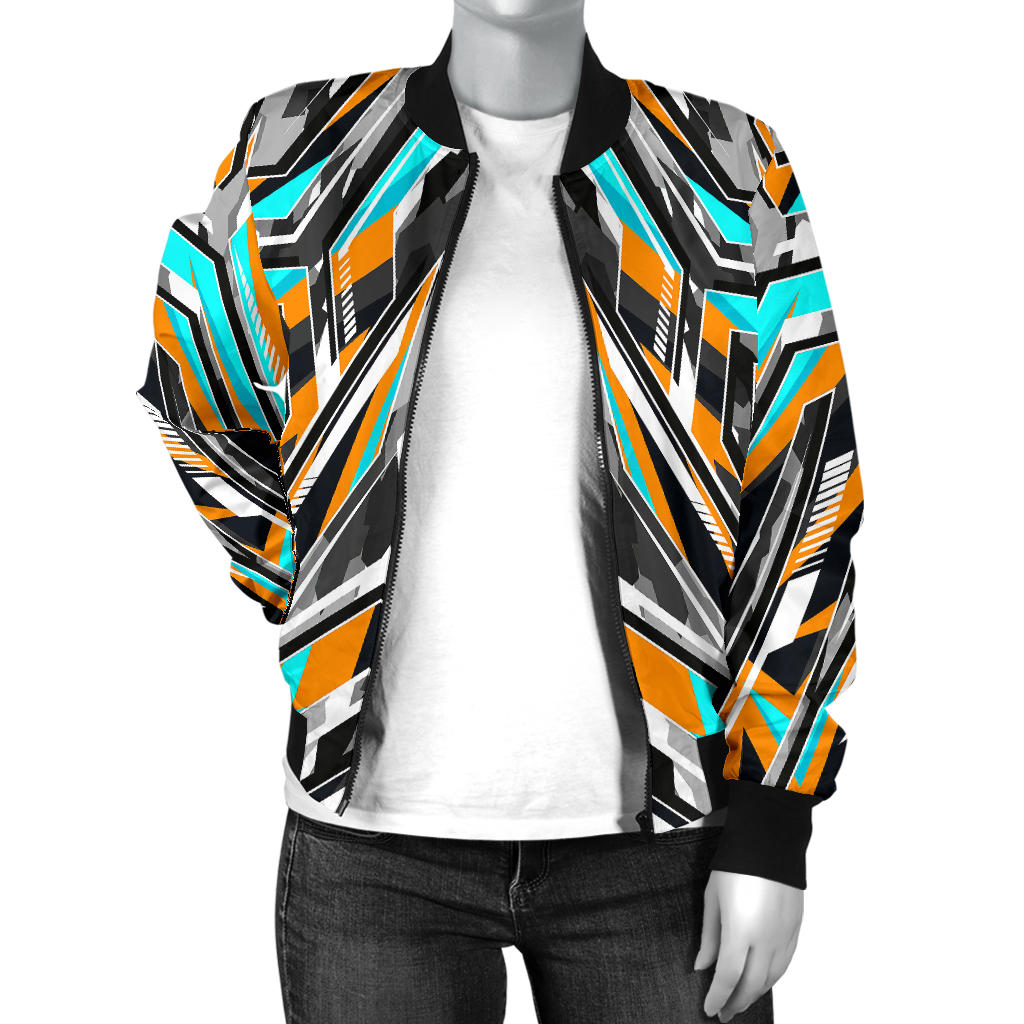 Racing Army Style Orange & Light Blue Women's Bomber Jacket