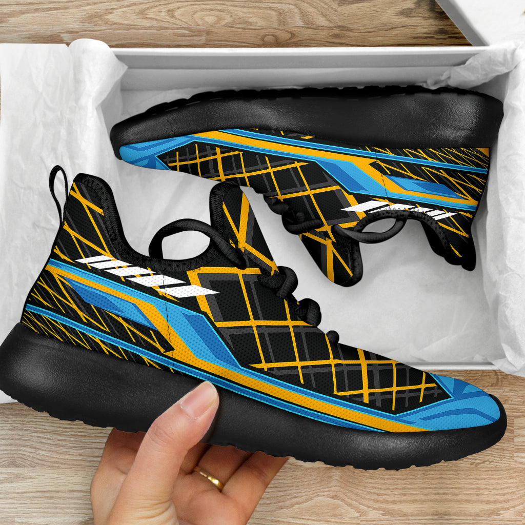 Racing Style Black & Light Blue Mesh Knit Sneakers