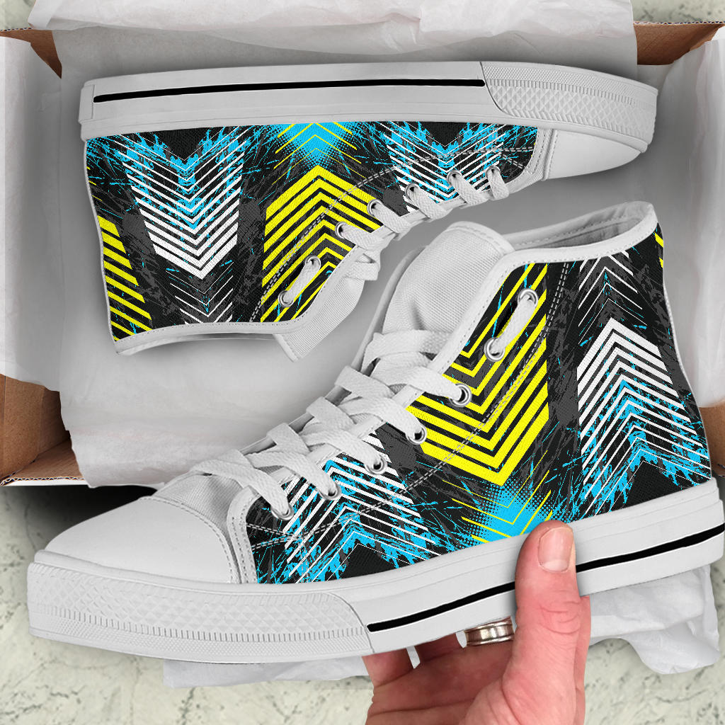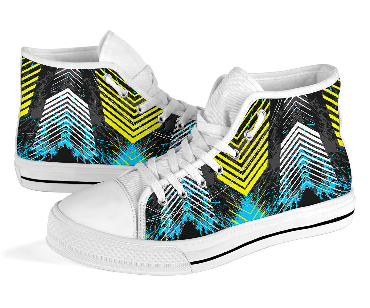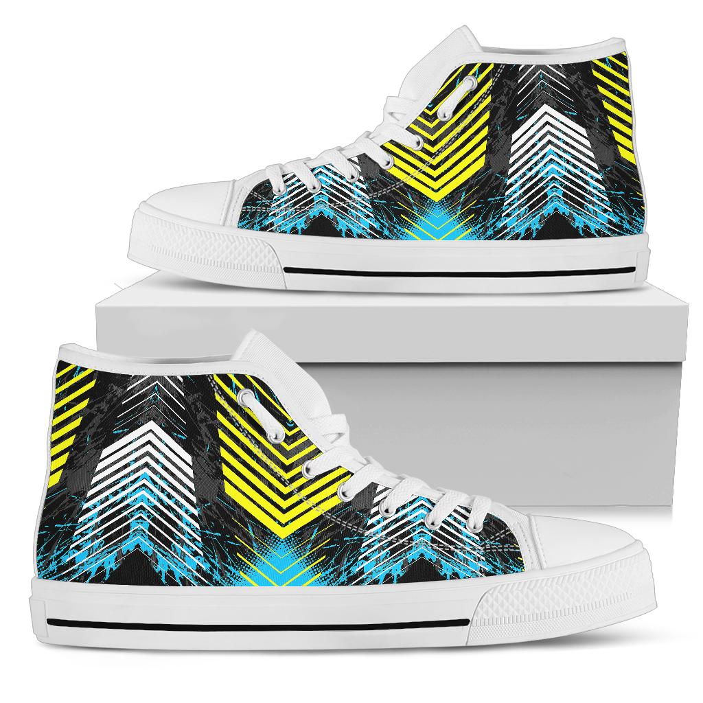 Racing Style Blue & Yellow Stripes Vibes High Top Shoes