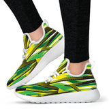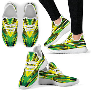 Racing Style Brazil Colors White Mesh Knit Sneakers