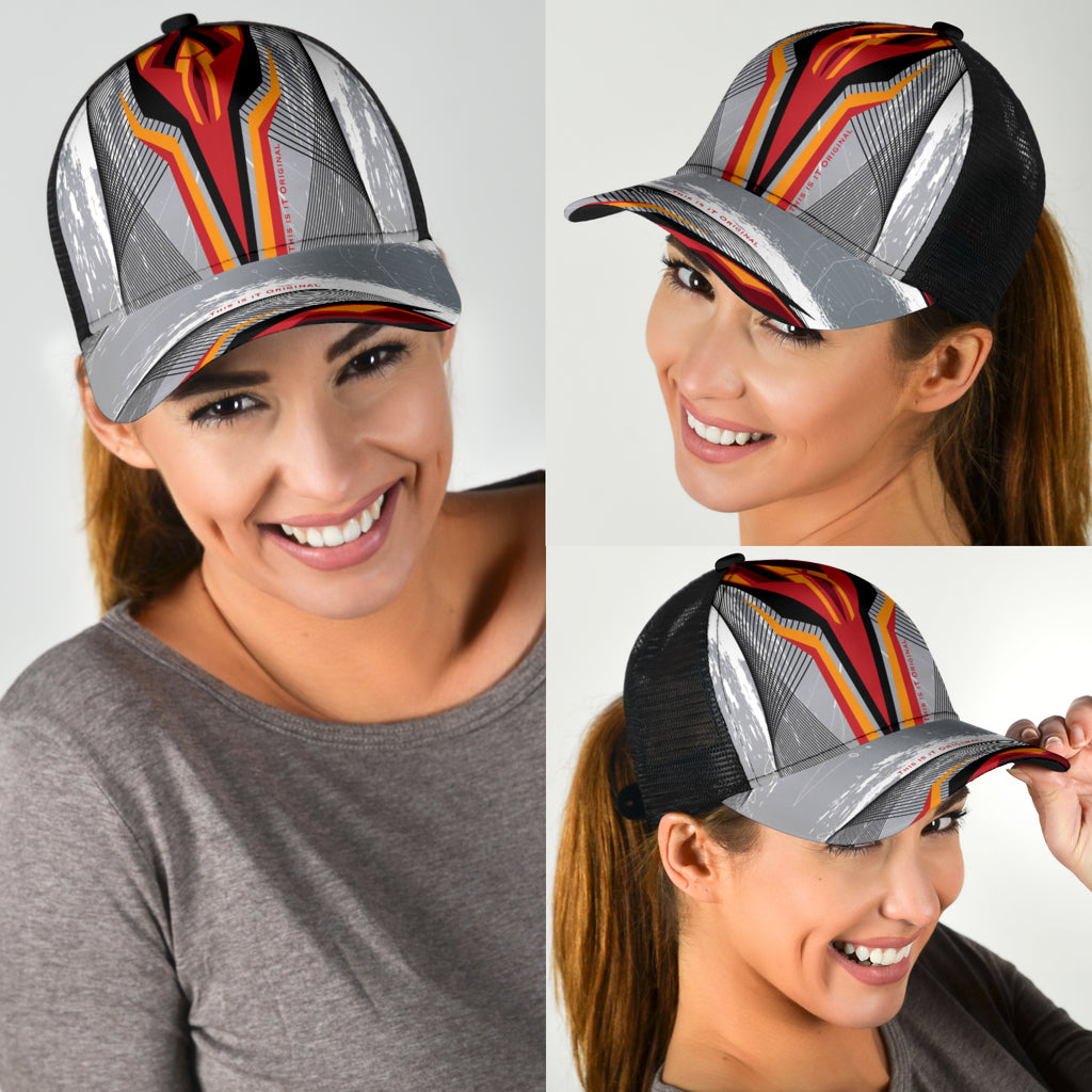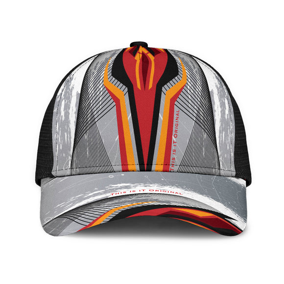 Racing Style Gray & Red Design Art Mesh Back Cap