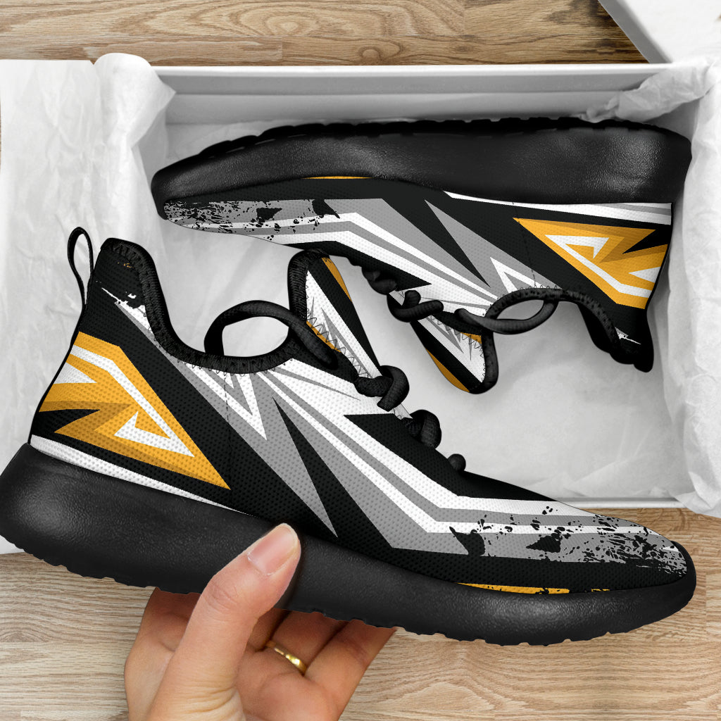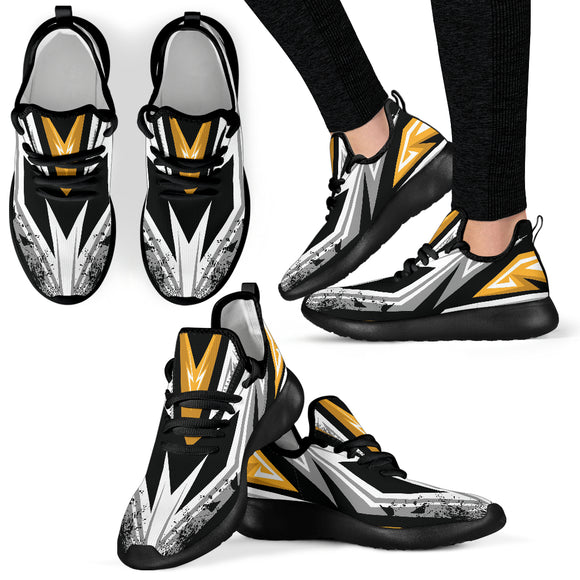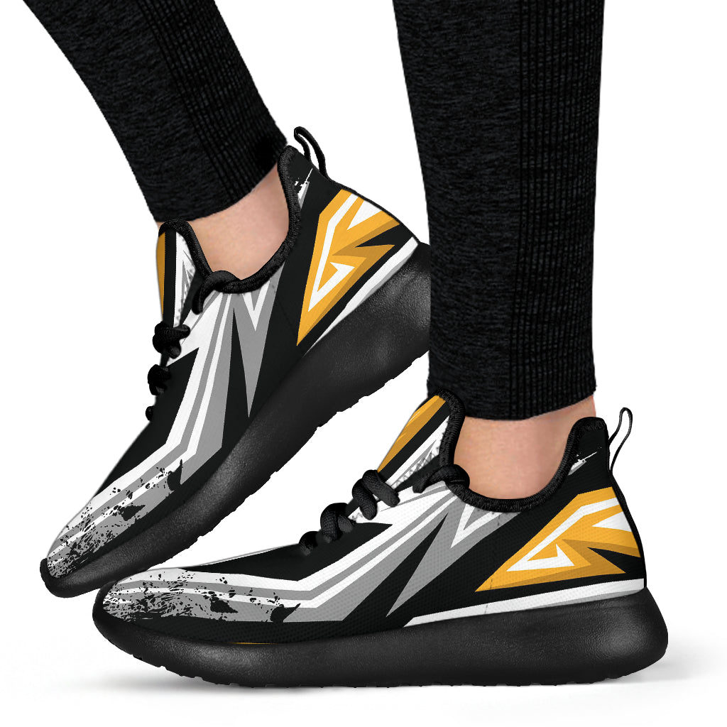 Racing Style Grey & Gold Mesh Knit Sneakers