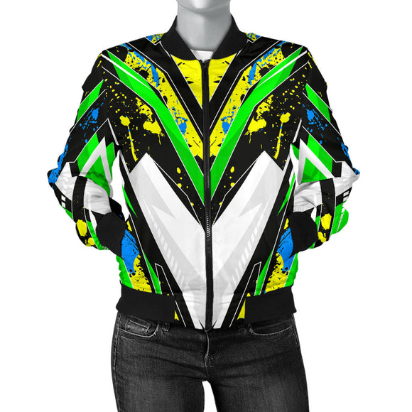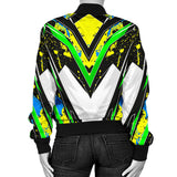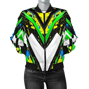Racing Style Neon Green & Black Colorful Splash Vibe Women's Bomber Jacket