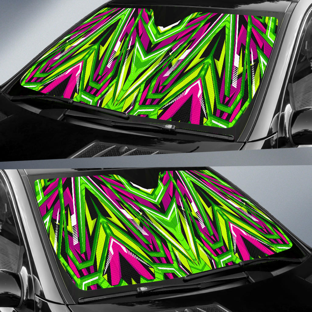 Racing Style Neon Green & Pink Vibes Auto Sun Shades